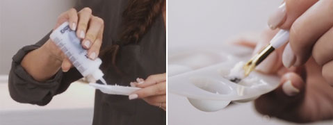 Step 1| BLOND BROW immer mit OXIDANT CREME verrühren, um eine schöne pastenähnliche Konsistenz zu erreichen.