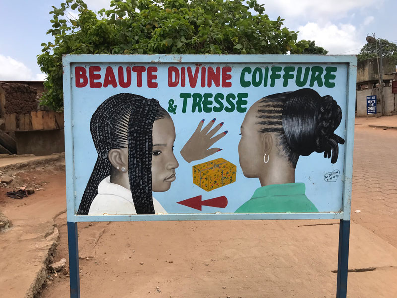 "In Benin sind Haare sehr wichtig. Die meisten Leute sind sehr arm, aber beim Haar sparen sie nicht. Frauen haben tolle und aufwendige Hochsteckfrisuren. Friseursalons gibt es an allen Ecken."