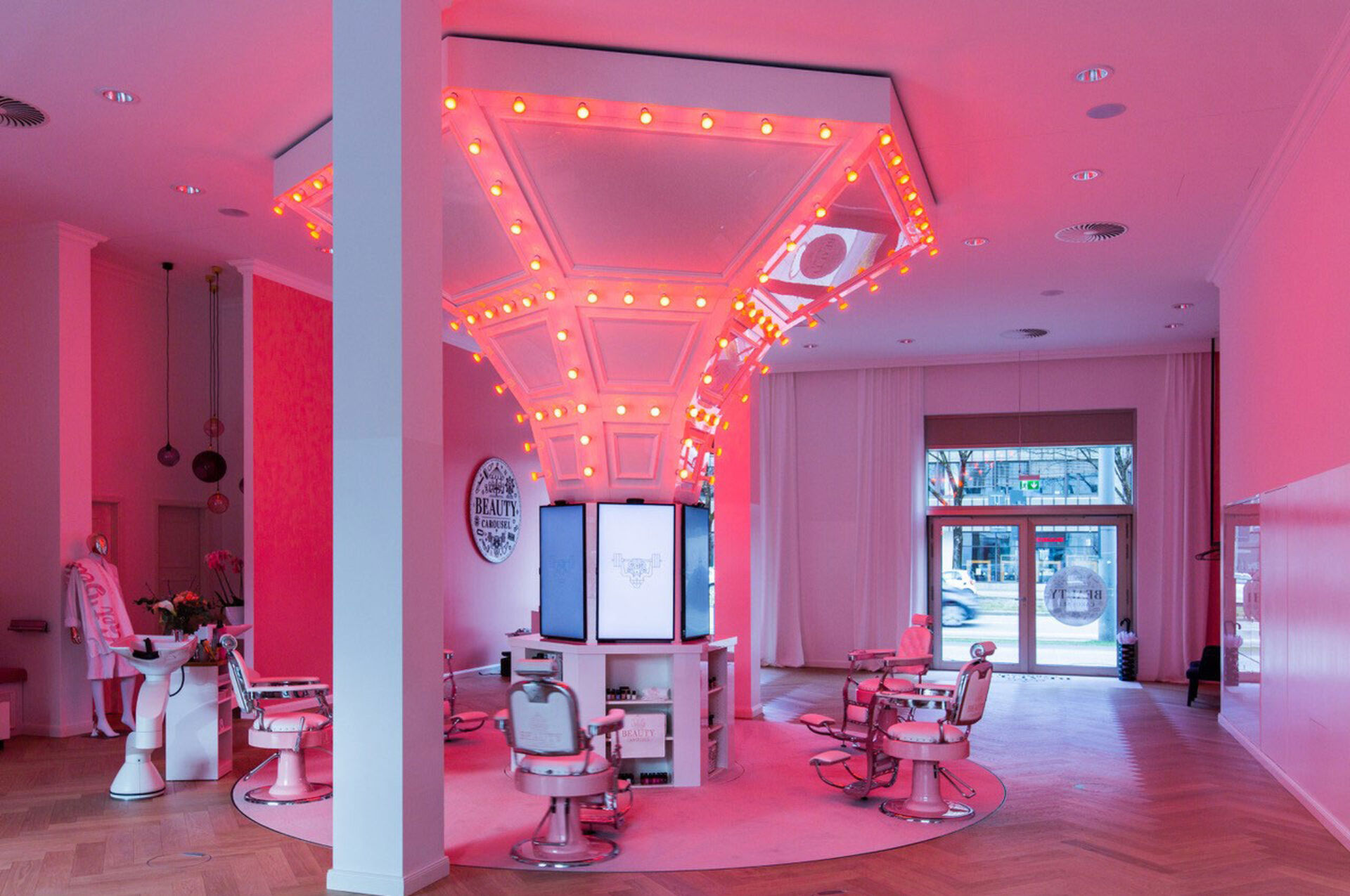 Mit dem Slogan "Begeben Sie sich auf eine 60-minütige Fahrt und steigen sie von Kopf bis Fuß perfekt gestylt aus - das Beauty Carousel im Schwabinger Tor in München macht Beauty-Wunder wahr!" deutet darauf hin, dass man sich schon beim Betreten des Beauty Carousels in einer anderen Welt wiederfindet.