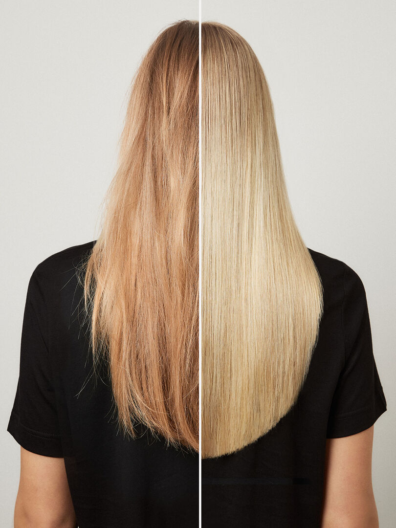 Zur Unterstützung der Salonbehandlung: Das Shampoo pflegt die Haarfaser und glättet das Haar für Glanz und Geschmeidigkeit. Das Leave-in Treatment unterstützt den Strukturerhalt, reduziert Frizz und bietet Hitzeschutz bis zu 230 °C.