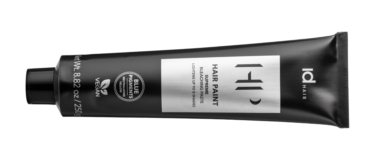 Die idHair Supreme Bleaching Paste aus der Hair Paint Kollektion ist die neuste vegane Blondierung von iDHair. Es handelt sich hierbei um eine blaue Blondierpaste, die mit einer nahezu perfekten Balance und einer hohen Aufhellungswirkung mit erstklassigem Schutz besticht.