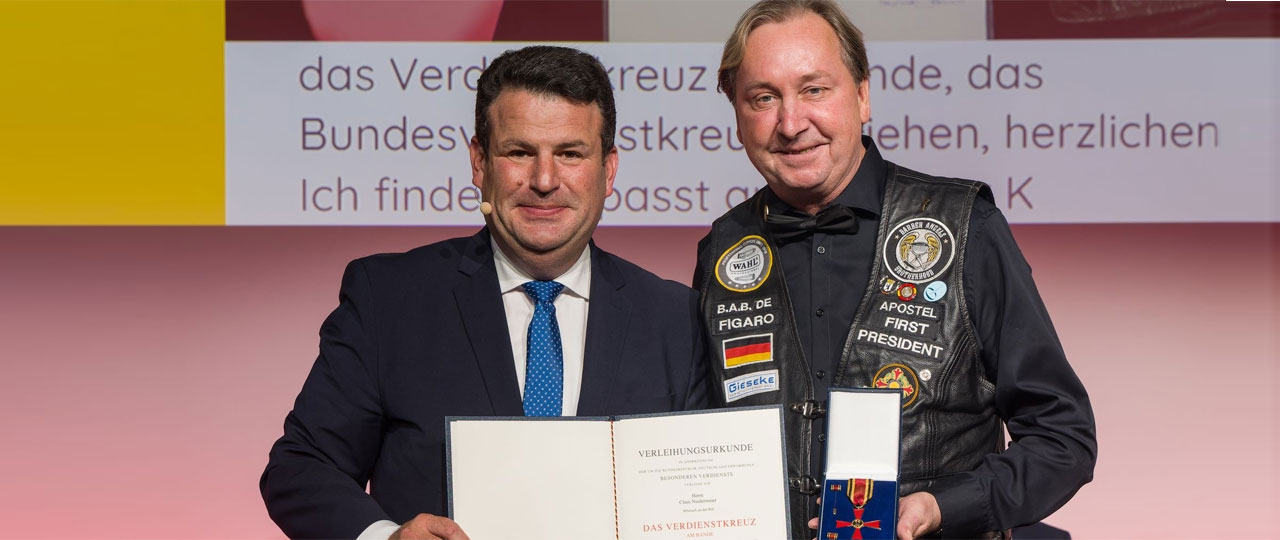 Seit dem Jahr 2016 widmen sich die ►Barber Angels Brotherhood obdachlosen und bedürftige Menschen und schneiden ihnen kostenlos die Haare. Nun wird der Ideengeber der wachsenden Charity-Community, der Biberacher Claus Niedermaier, mit dem Bundesverdienstkreuz am Bande ausgezeichnet. Eine Auszeichnung, die auch den mittlerweile rund 800 weltweit tätigen Friseurinnen und Friseuren gilt, die sich seiner Idee des sozialen Engagements verschrieben haben.
