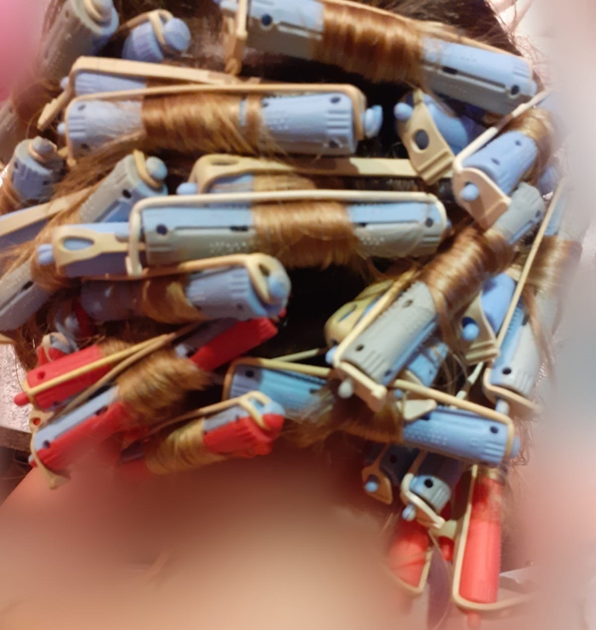 - Man beginnt im Nacken und setzt den ersten Wickler bis an den Ansatz.