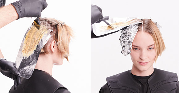 - Farbe 2 – IGORA ROYAL 9-7 + IGORA ROYAL PASTELFIER (1:1) + IGORA ROYAL OIL DEVELOPER 9% (1:1)
