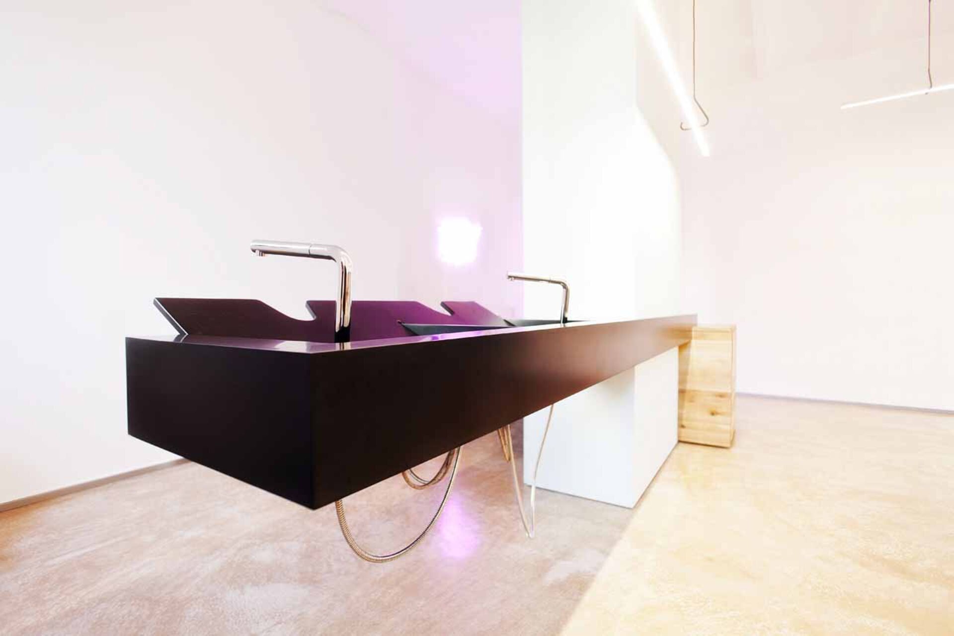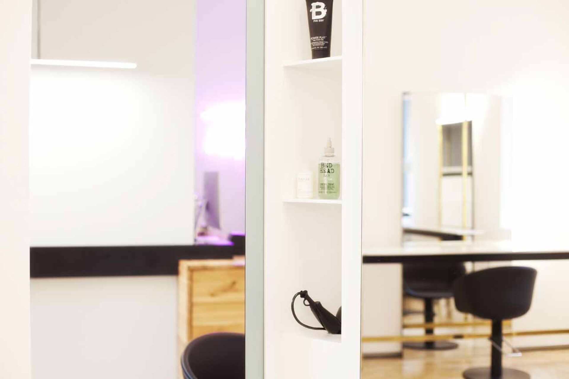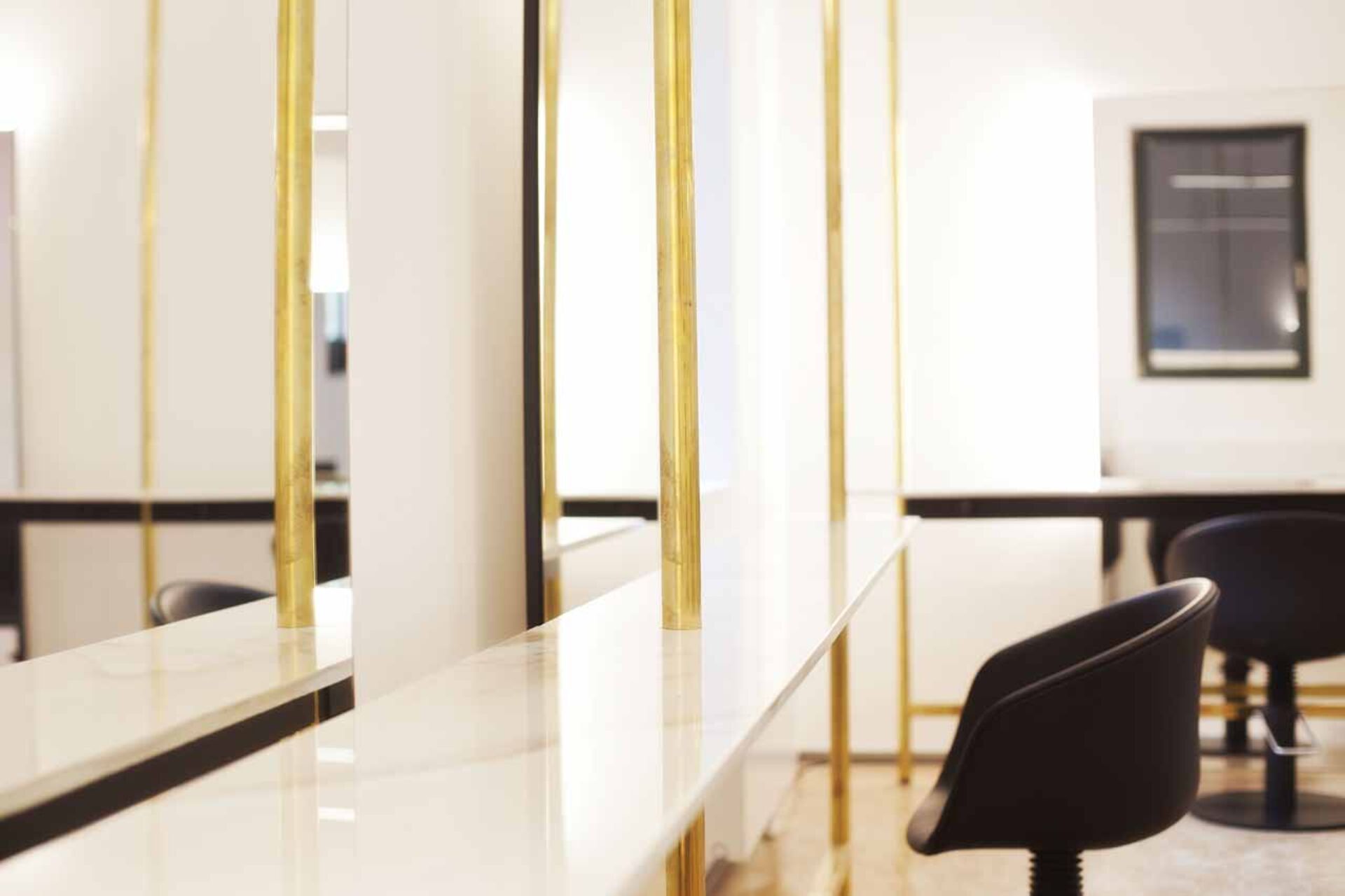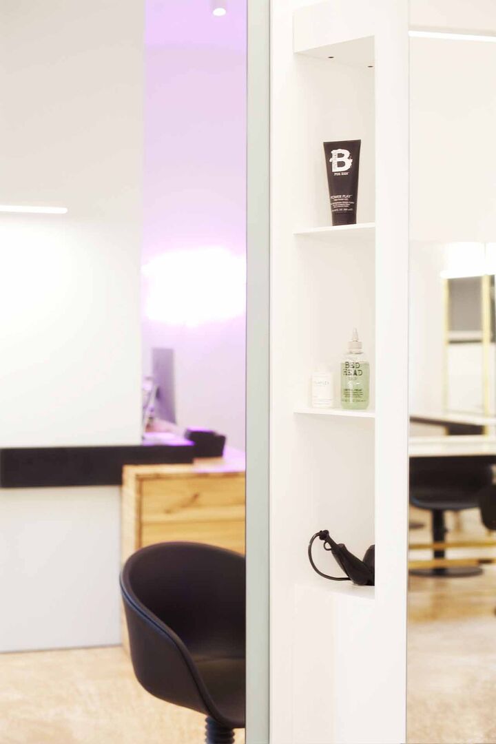 Vom handschriftlich designten Logo, über das selbst gebaute, freischwebende Waschbecken bis hin zum eyecatchy Spiegelkubus, der gleichzeitig als Stauraum für Farben dient, ist in Fatih Erbay's Salon "Fatih Hairdressing" in Stuttgart nichts einfach nur "Standard". Das Interieur strotzt vor Einzigartigkeit, selbst ausgedachten Unikaten und man erkennt Fatihs Handschrift durch die Liebe zum persönlichen Detail. Messingrohre, die sich durch den Salon ziehen, schaffen einen Stilbruch zur handgemachten Vollholz-Bedientheke aus Eiche. Weiße Marmorplatten, die als Ablagen an den Schneideplätzen dienen, verbreiten edle Noblesse.