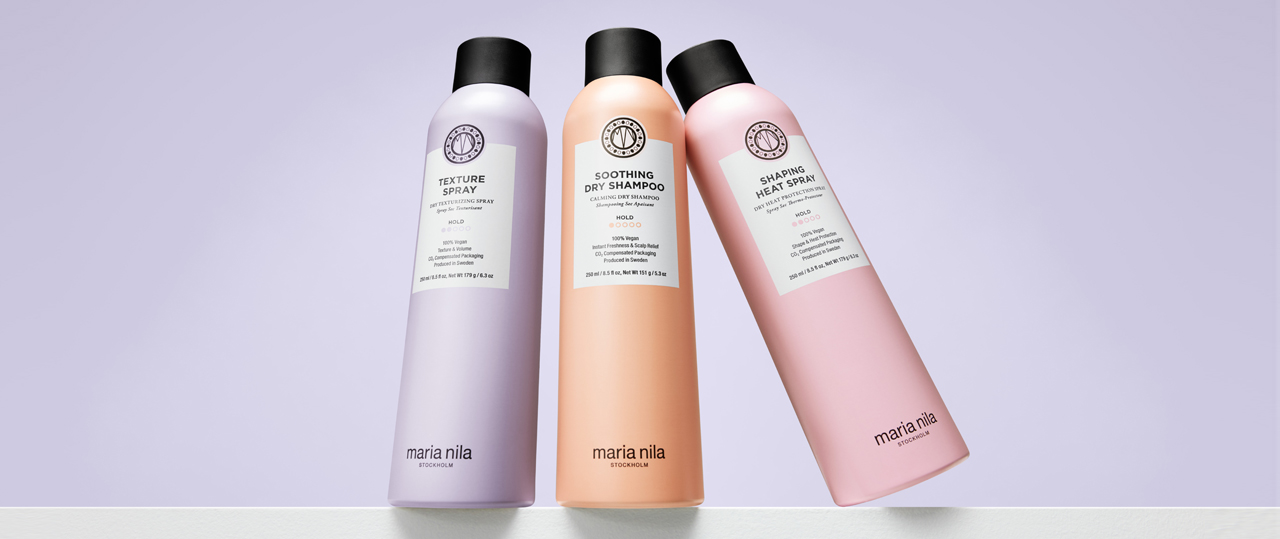 Die drei neuen Aerosole Style & Finish-Produkte von Maria Nila aus dem Hause New Flag bereiten das Haar mühelos fürs Styling vor, bringen es in Form und erfrischen. Diese neuen Sprays machen es einfach, mit neuen Looks zu experimentieren, da sie direkt im trockenen Haar angewendet werden können.