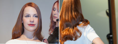 Step 5| Die Strähnen beim eindrehen gut festhalten. Verwenden Sie einen Hitzehandschuh. Mit diesem lassen sich die Haare am Stab gut umfassen.