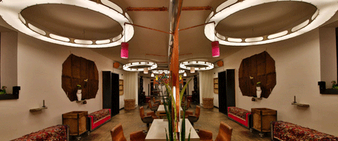 Hans Wolf: Meine Frau und ich! (lächelt stolz) (die darauf folgenden 20 Minuten zeigt mir Herr Wolf sein Buch der Salonentstehung mit allen Skizzen.) Wir haben alles selbst designt und in Zusammenarbeit mit regionalen Designern/ Handwerkern umgesetzt, auch alle Materialien sind regional erworben.
