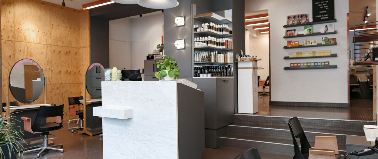 Der Salon hat einen integrierten Eco-Produktshop, hier werden ausgewählte organischen Haarpflege Produkte angeboten.