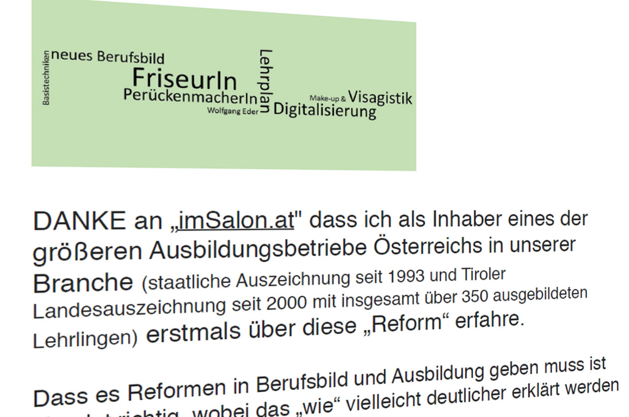 Um diesem Abwärtstrend entgegenzuwirken und das Berufsbild "Friseur/-in" qualitativ weiterzuentwickeln, hat z.B. die Innung der Vorarlberger Friseure und die Landesberufsschule Feldkirch seit 2018 den "Kompetenzcheck" eingeführt. Dieser soll schon in der Mitte der Lehrzeit die Qualität der Ausbildung messen und die Lehrlinge früher an Fachkompetenzen heranführen, indem auch soziale, sprachliche und persönliche Aspekte mitberücksichtigt werden.