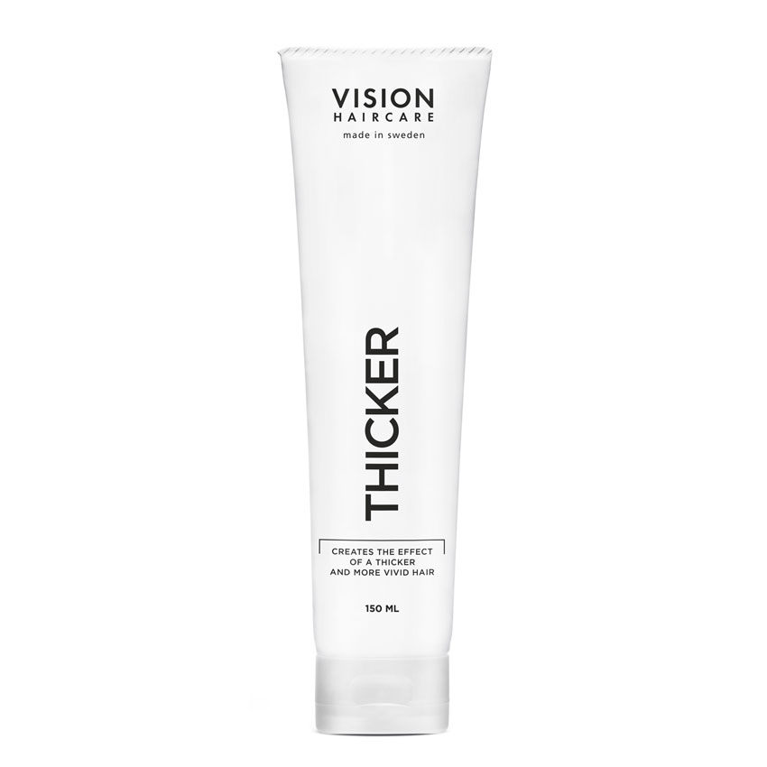 Thicker der Marke Vision Haircare ist ein Haarverdicker und erzeugt den Effekt von dickerem und strahlendem Haar. Die Creme macht die Haarfaser fülliger, während sie die Faser gleichzeitig nährt und mit Feuchtigkeit versorgt. Thicker erzeugt nicht nur ein natürliches, weiches Gefühl im Haar, sondern gibt auch Textur und Volumen. Dank des integrierten Hitzeschutzes eignet er sich ideal für die Verwendung mit Föhn, Glätteisen und Lockenstab. Es bietet mittleren Halt, definiert und kontrolliert das Haar und sorgt dafür, dass es strukturiert bleibt.
