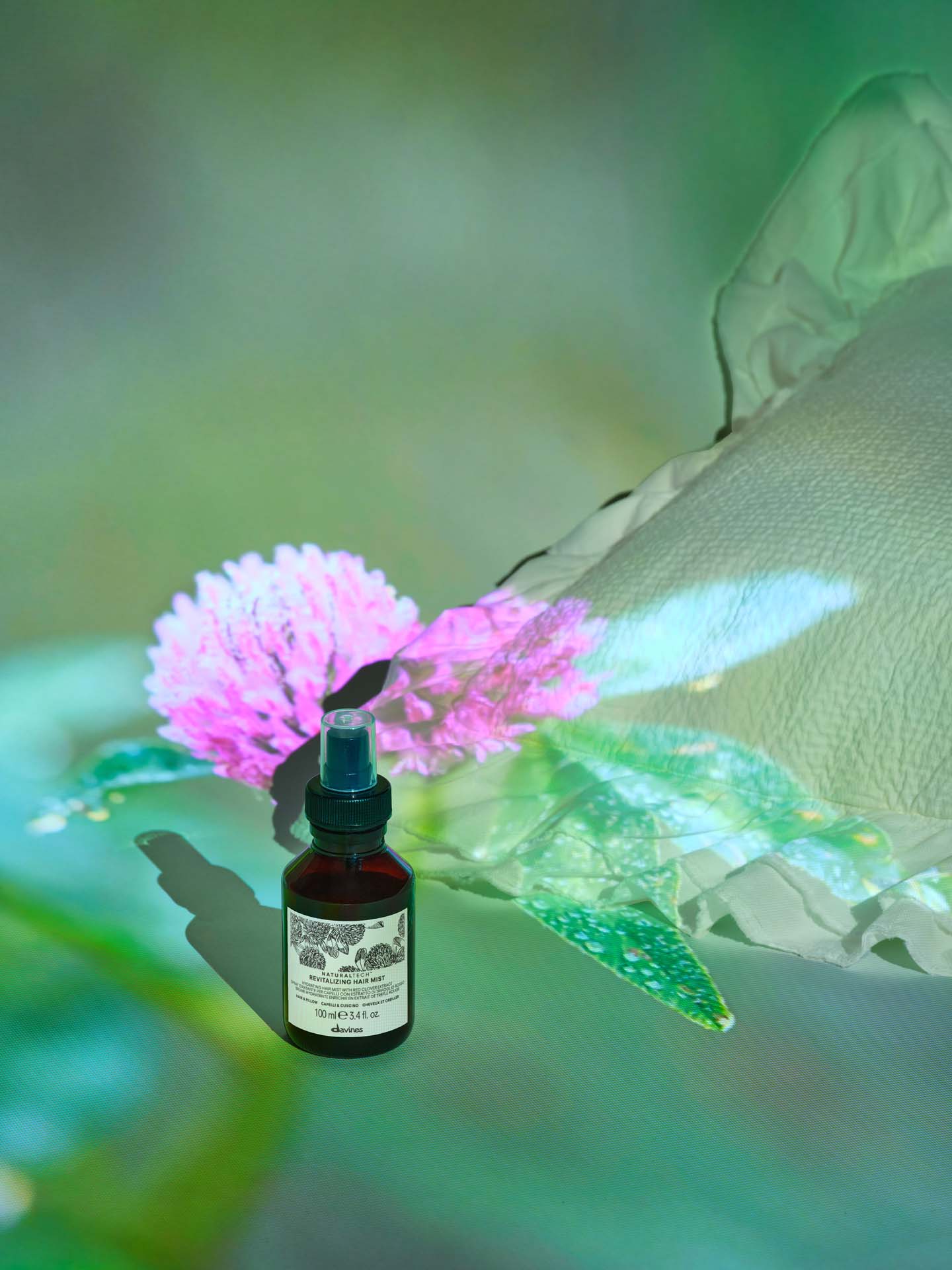 Begleitet wird die brandneue Kampagne von der Produktneuheit Hair & Pillow Mist mit Rotklee-Extrakt. Der Duft, von Waldnoten inspiriert, ist ein Geschenk für Salon-KundInnen - bei einem Kauf von zwei Naturaltech-Produkten. Das Spray in limitierter Auflage spendet Feuchtigkeit und sorgt für geschmeidiges Haar – tagsüber oder auch in der Nacht. Der darin enthaltene Rotklee-Extrakt stammt aus regenerativer Bio-Landwirtschaft. Das Produkt wird in Italien hergestellt und ist exklusiv in Davines Salons erhältlich.