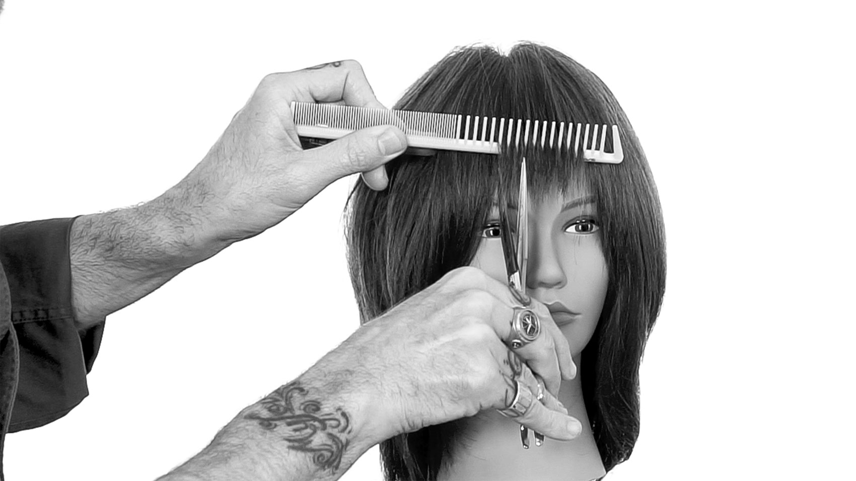 Der pefekte lange Pony wird grundsätzlich von der Mitte zu den Seiten hin länger. Andrew Carruthers, Education Director bei Sam Villa, erklärt wie.