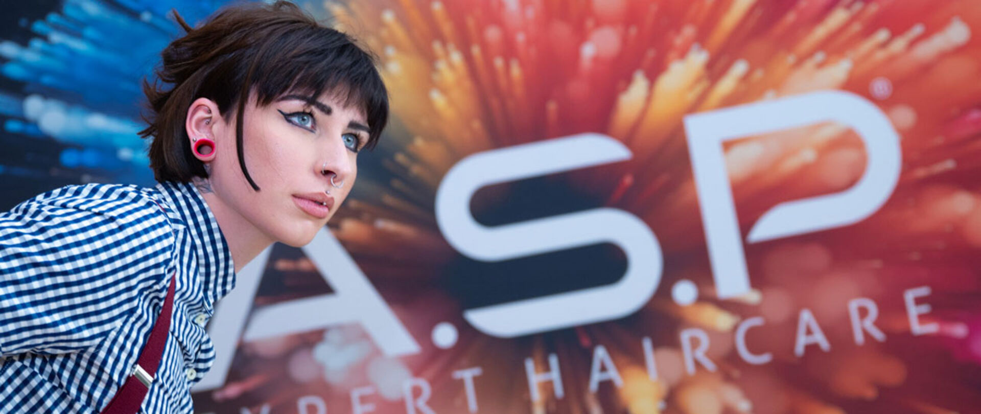 2. Das Cosmic Blow-Dry Jelly auf die Ansätze geben und das Haar streng nach hinten zu zwei Zöpfen stylen. Diese dienen als Basis für den Look