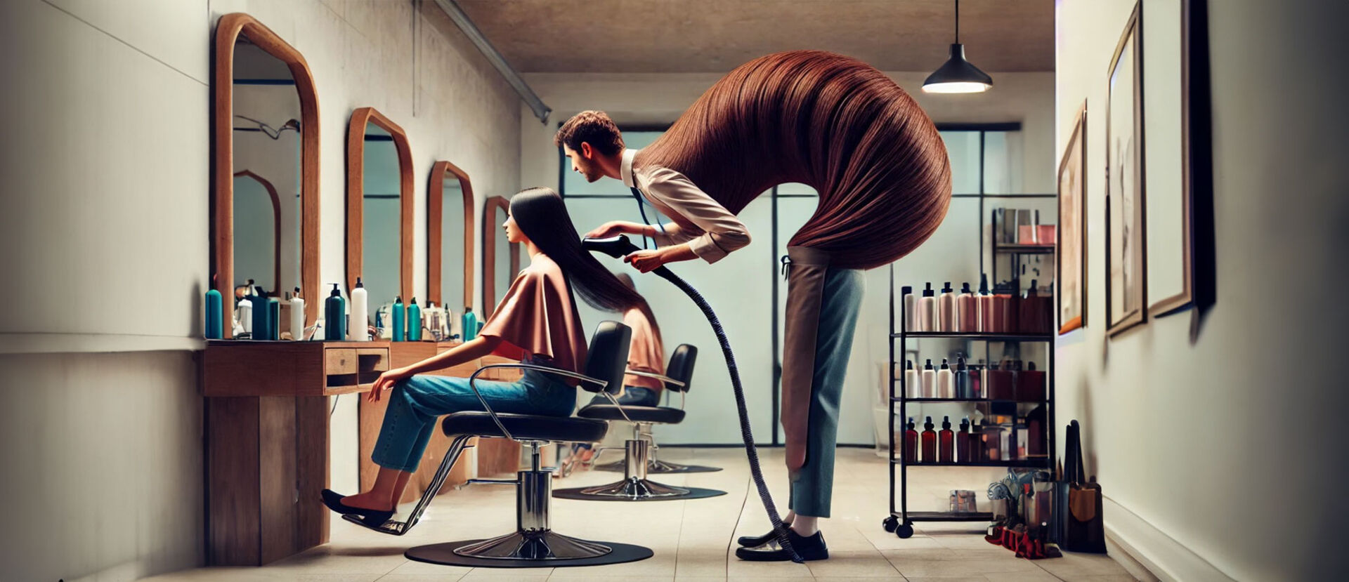3. Extensions in die beiden Zöpfe einarbeiten und mit dem Airy Texture Spray Volumen in den Längen kreieren