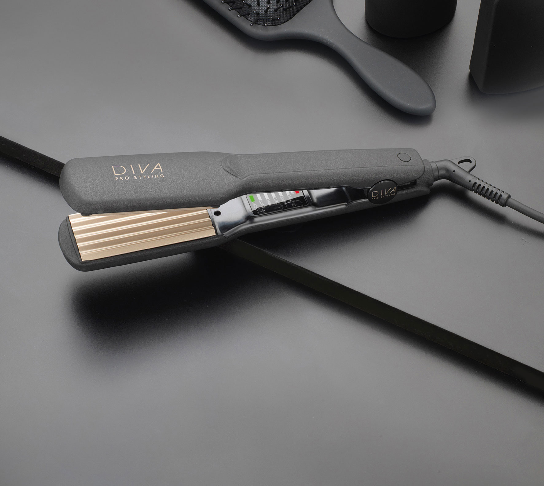 Diver Digital Crimper aus dem Hause Euro-Friwa sorgt für voluminöses und wildes Styling. In sekundschnelle ist es aufgeheizt und schafft langanhaltende gecrimpte Haare fur jeden Haartyp und jede Haarstruktur. Mit Keramik-Platten mit Macadamia, Arganol und Keratin kontrolliert es Frizz - für seidig glänzendes Haar. Es besitzt eine gleichmäßige Hitzeverteilung bis zu 210°C und eine Hitzeeinstellung nach Temperatur (110-210°C).