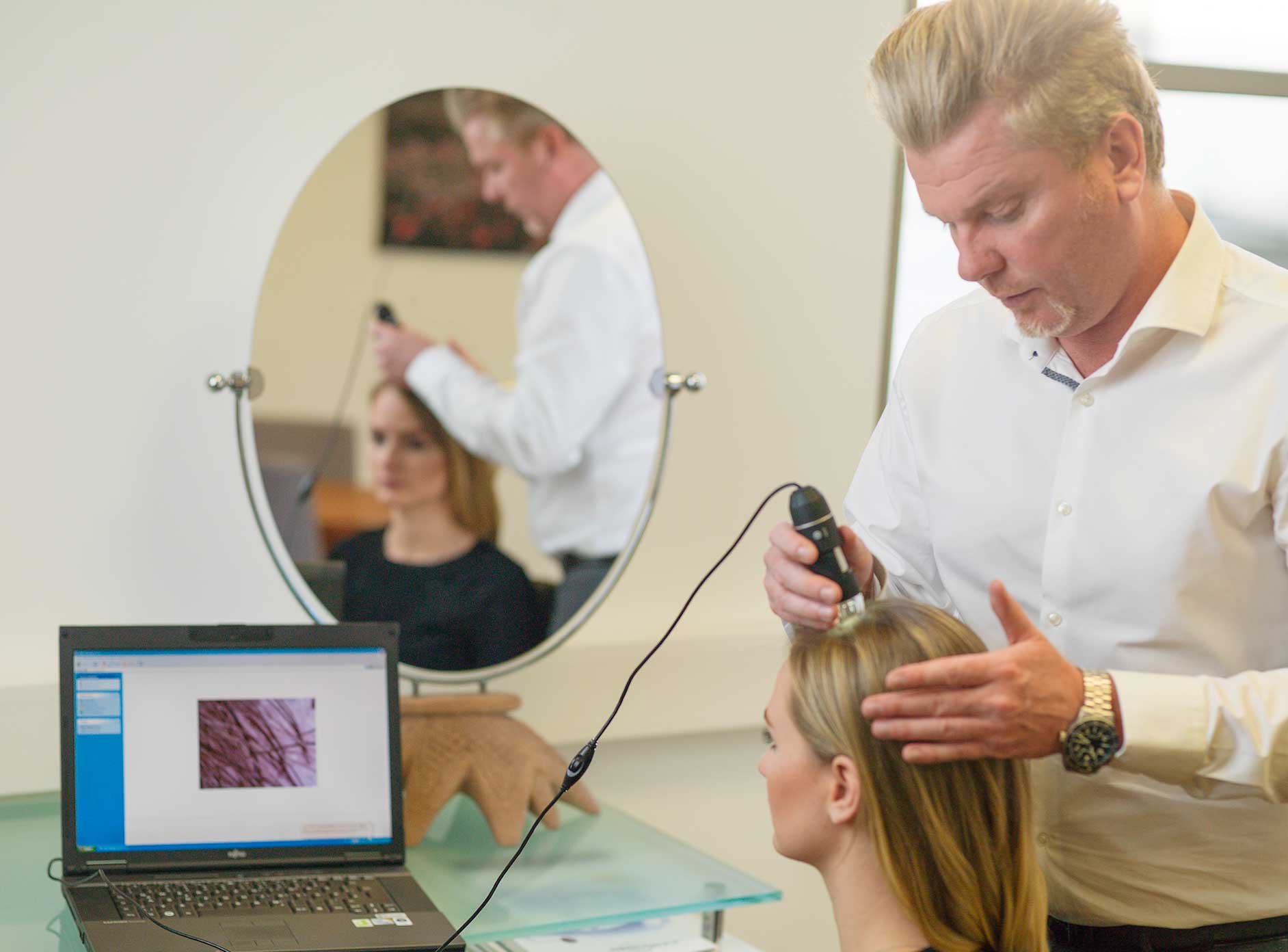 PF: Onkologen. Denn die sind immer wieder damit konfrontiert, über Haare sprechen zu müssen. Bei vielen Frauen, die Krebs diagnostiziert werden, ist die erste Frage nicht, ob sie wieder gesund werden, sondern ob die Haare ausfallen. Der Arzt ist für den medizinischen Bereich verantwortlich und unsere Aufgabe ist es über den Perückenbedarf zu informieren. Wir haben das dann modern aufgesetzt.