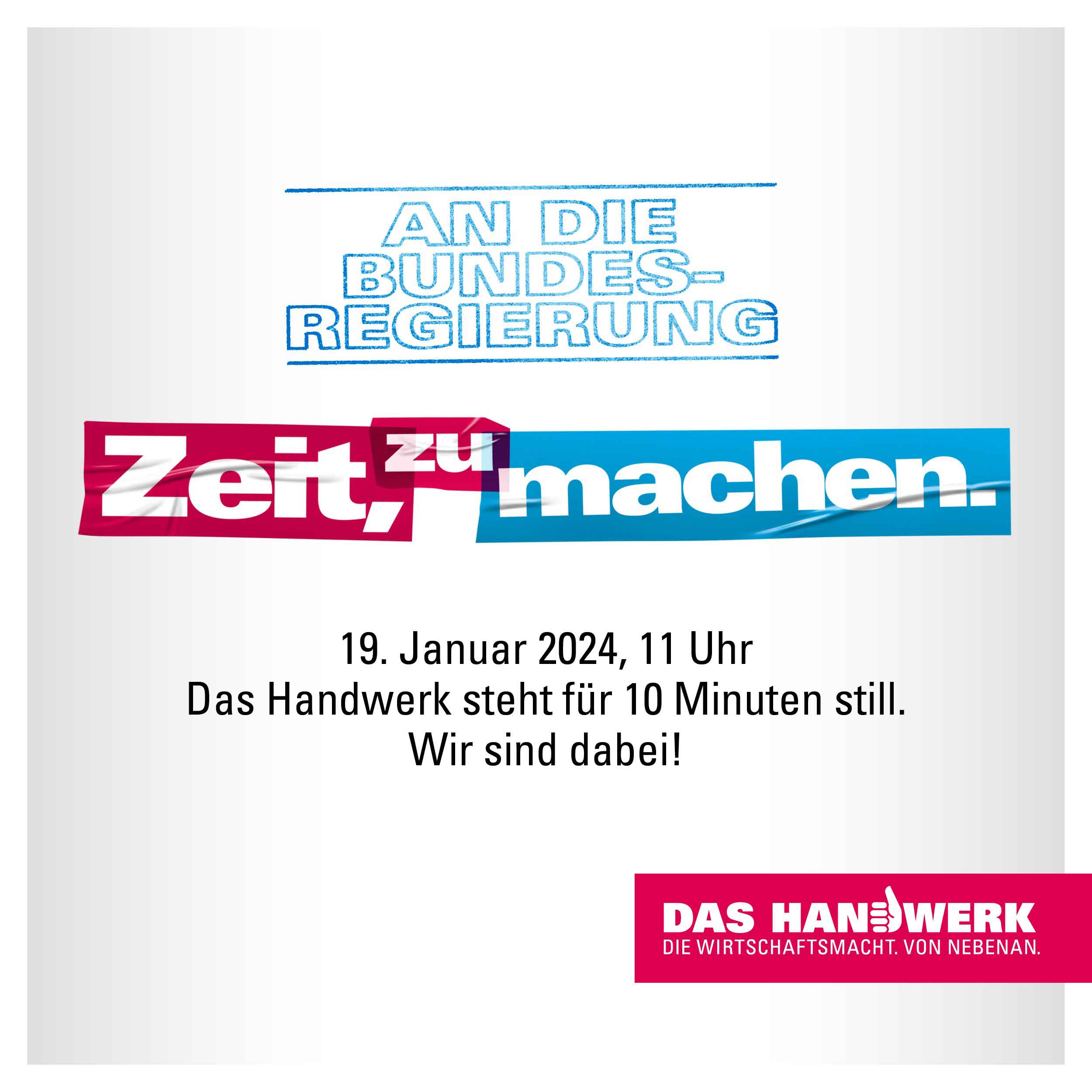 Protestaktion ZDH: Handwerk steht am 19.1. für 10 Minuten still