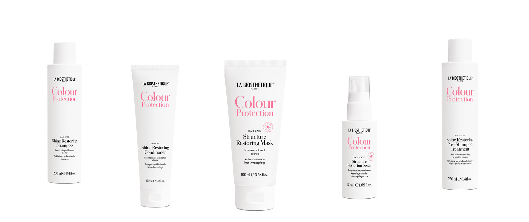 Als Salonanwendung schützt das kraftvolle Structure Restoring Concentrate das Haar bereits während der chemischen Beanspruchung und verhindert Haarbruch. Zuhause restrukturiert die Structure Restoring Systempflege bestehend aus Maske und Spray chemisch behandeltes Haar von innen wie von außen. Der im Spray enthaltene molekulare Wirkstoffkomplex rekonstruiert die geschädigte Haarstruktur, die intensiv pflegende Maske mit Kamelien- und Arganöl nährt sie tiefenwirksam und verhindert vorzeitiges Verblassen der Haarfarbe.