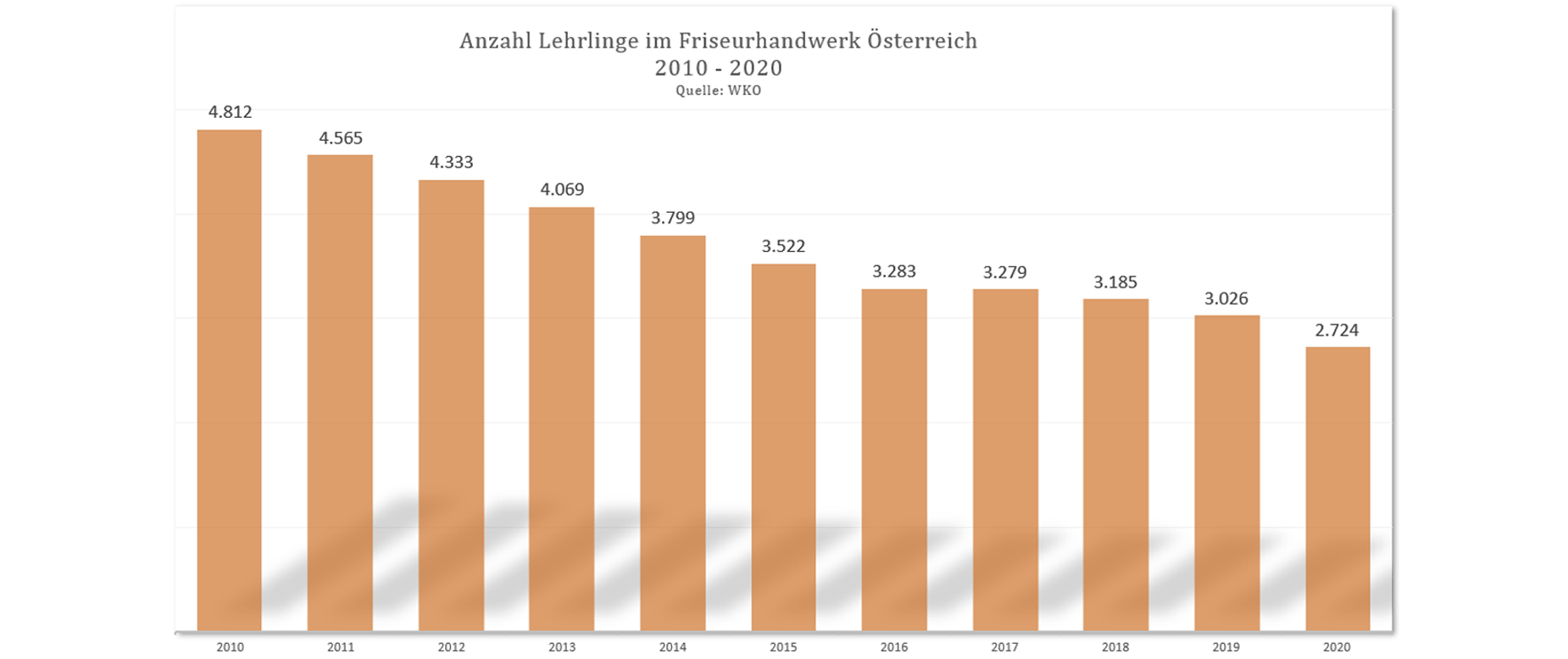 Insgesamt liest sich die Zahlenhistorie ernüchternd. Hier die traurige Entwicklung der Lehrlinge im Friseurhandwerk in der Übersicht: (Quelle: WKO)