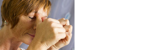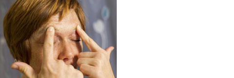 Tipp 2 | Mit den Zeigefingern mehrmals an den Augenbrauen entlang bis hin zu den Schläfen streichen. Bewegungen immer langsam und mit leichtem Druck ausführen. 3-5 Wiederholungen.