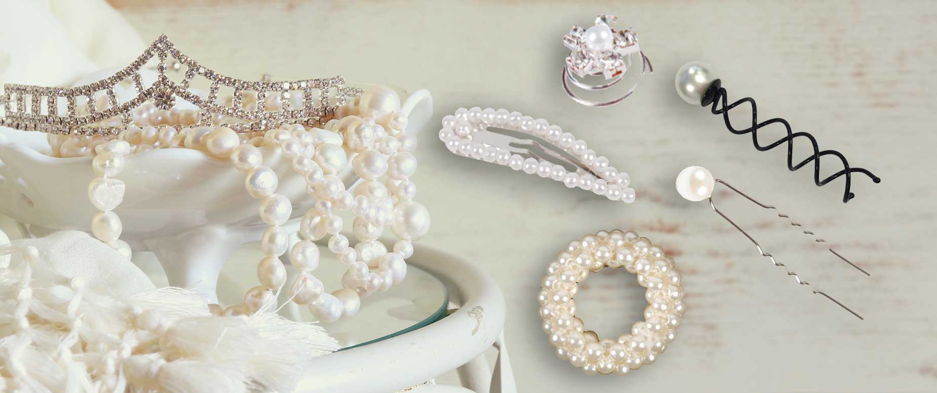 Er ist wieder im Trend und das zurecht! Perlenschmuck fürs Brauthaar ist vielfältig einsetzbar und eignet sich sowohl für die Gestaltung verspielter, als auch klassischer Frisuren. Mit welcher großen Auswahl an Perlenaccessoires das Haar in Szene gesetzt werden kann, zeigt das Brautschmuck-Sortiment von Eurofriwa, das von Kämmen über Klemmen bis hin zu Clips über zwanzig Produkte im Angebot hat.