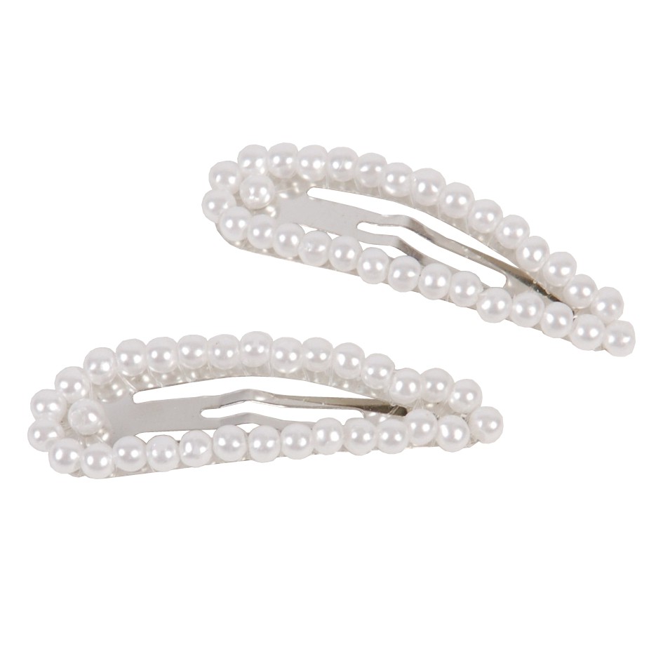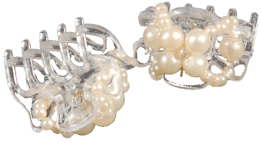 Diese hübschen Clips zum Zurückstecken von Haarsträhnen gibt es sowohl mit weißen als auch mit perlmuttfarbenen Perlen.
