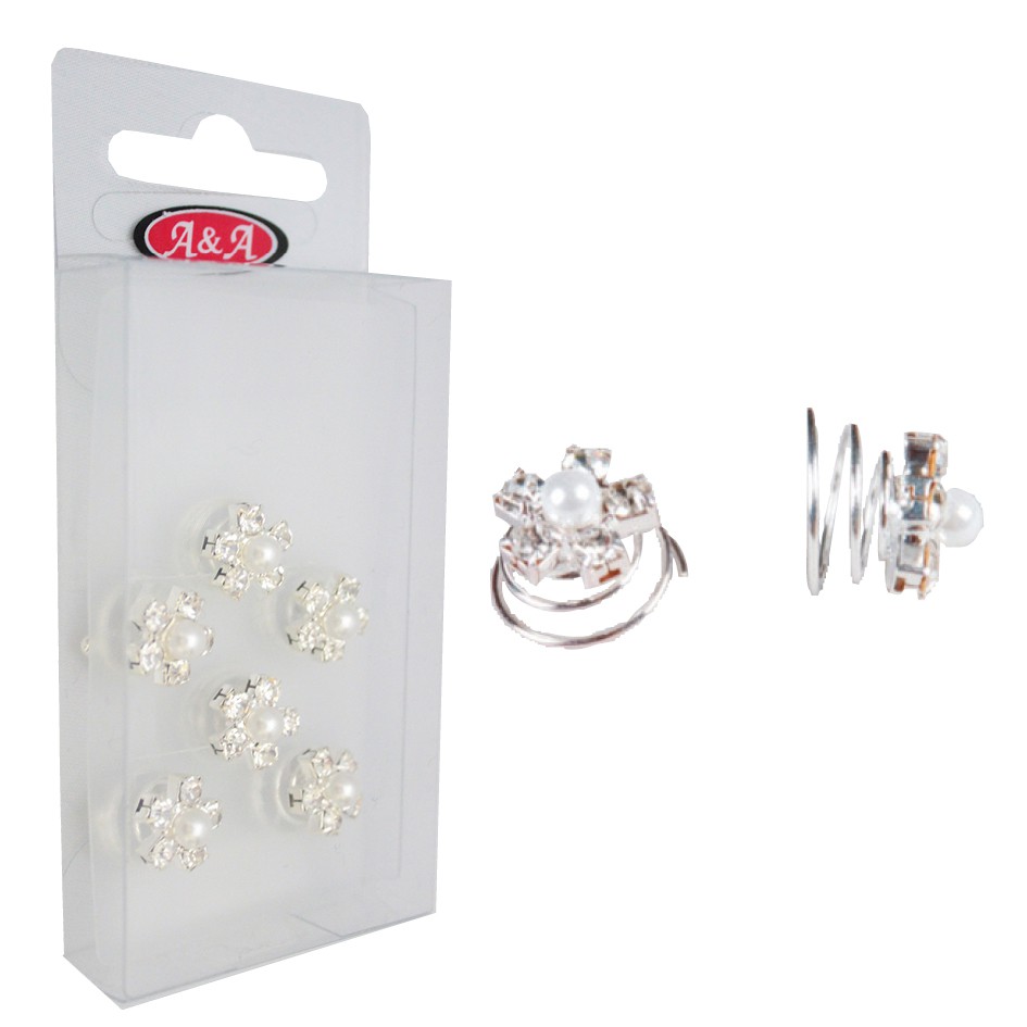 Ob mit Strassstein, Strassperle oder Glitterblüte: diese Haarspirale ist in sämtlichen Varationen (sechs Stück pro Packung) erhältlich.