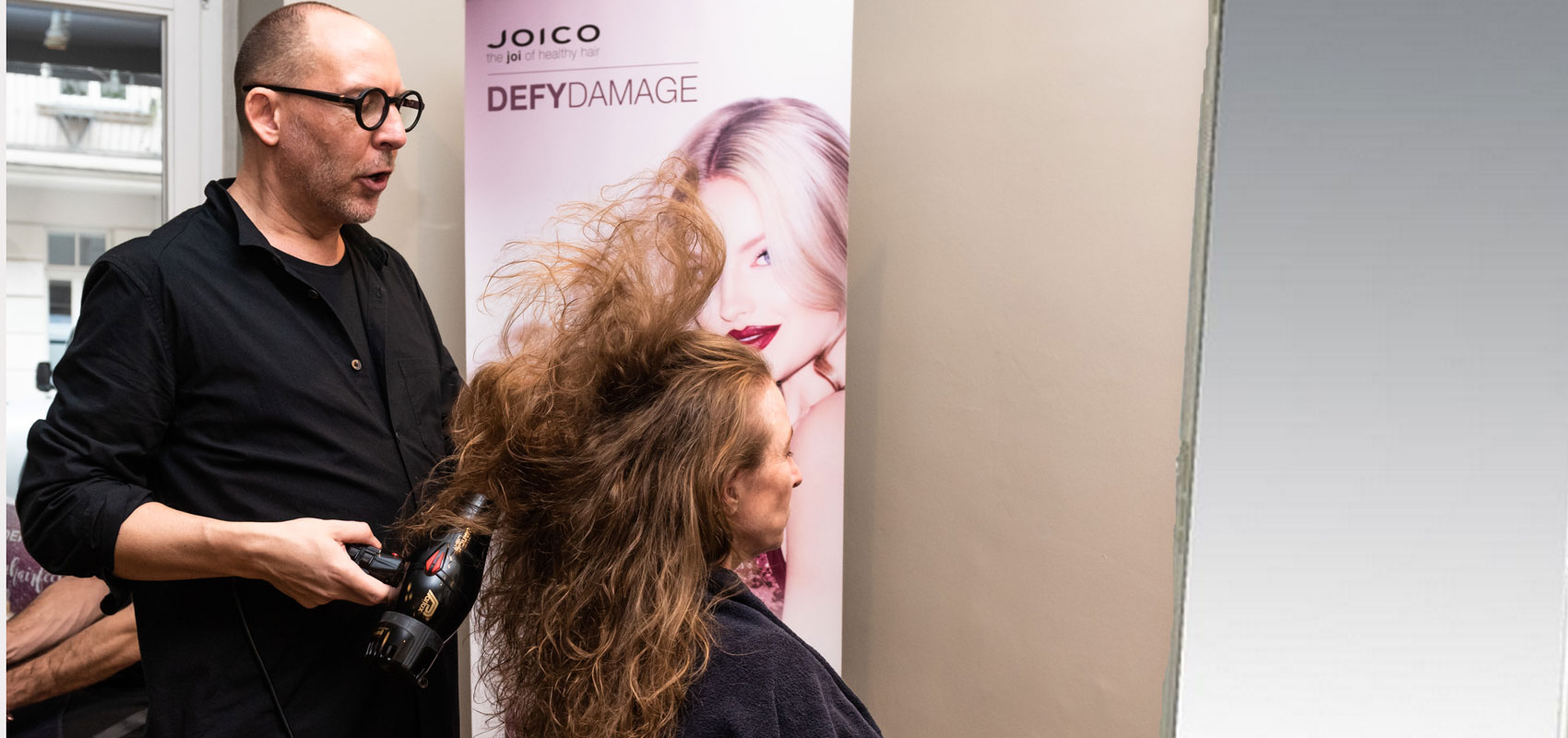 Im neu renovierten Salon empfängt mich Max Höhn, ich soll unbedingt ein neues spektakuläres Pflegetreatment von Joico kennenlernen, aber mehr noch, wir plaudern über Gott und die Friseurwelt.