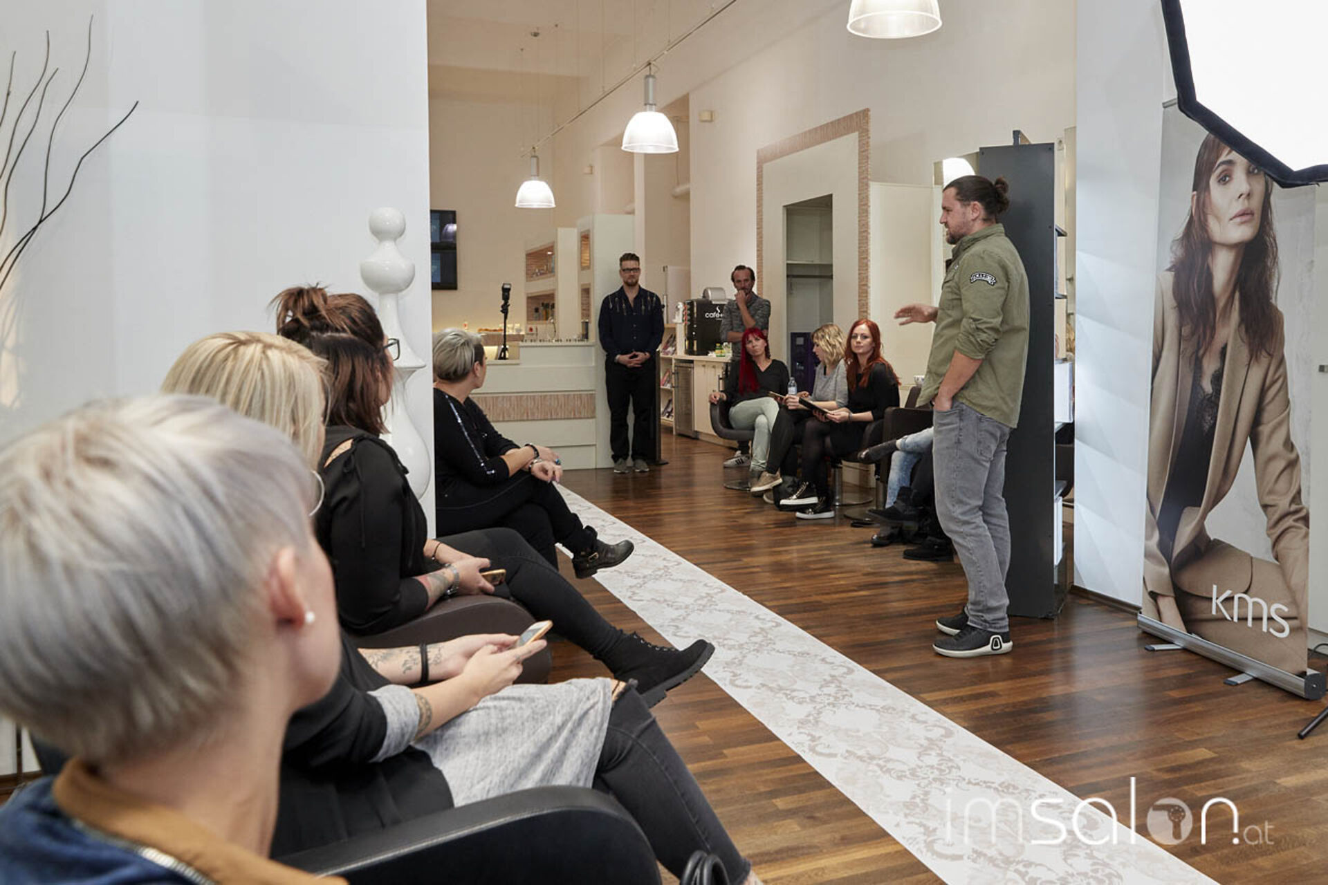 Die KMS Speaker Community trifft sich in Wien. 20 StylistInnen aus ganz Österreich, Botschafter ausgewählter Partnersalons, treffen sich zum inspirativen Austausch, zwei Tage. Wir kamen zur Stipvisite und trafen auf ein begeistertes Team.