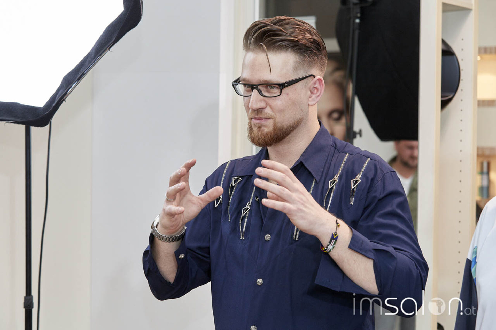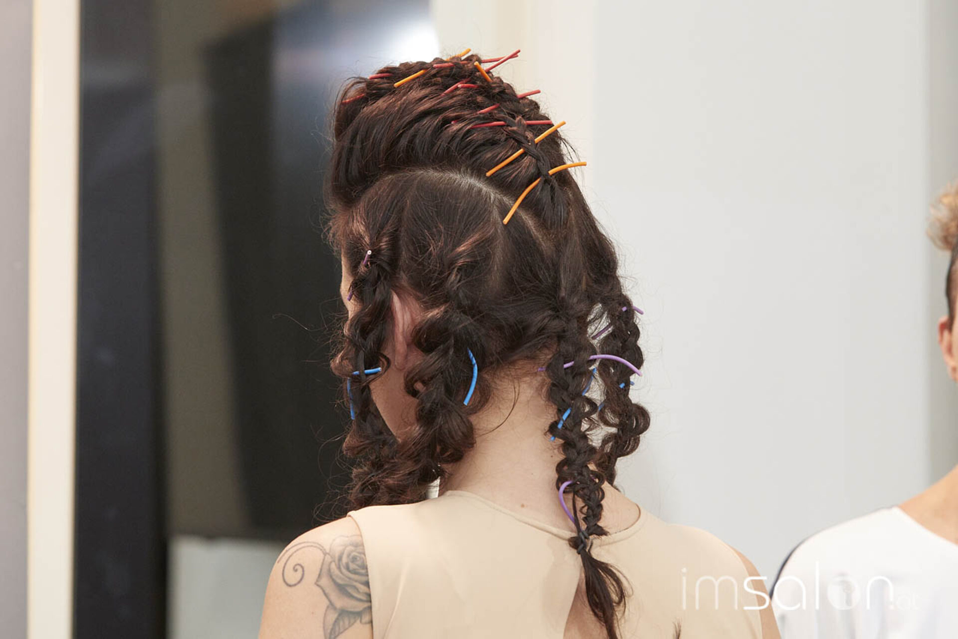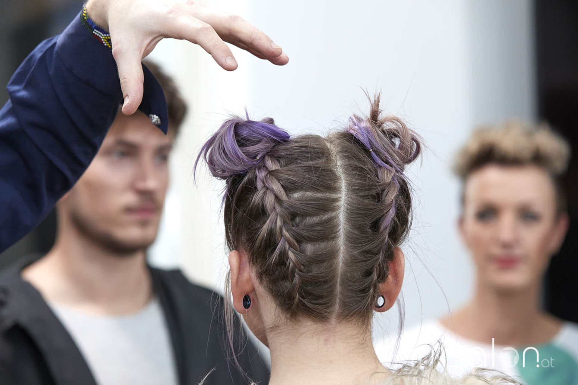 Aaron Leufen bereitete parallel die Abendshow vor, Streetimpressions hat er sich längst im Vorfeld geholt und nun an Modellen verwirklicht. Dennoch betont er: "Inspiration, das sind immer die Menschen, die vor uns sitzen. Ich bin Haarprofi. Ich muss Haare angreifen, dann weiß ich, was ich tun kann." Mit seiner Kollegin Timea Barabas, Trainerin in der Leufen Friseurakademie, setzte er das an 8 Modellen um.