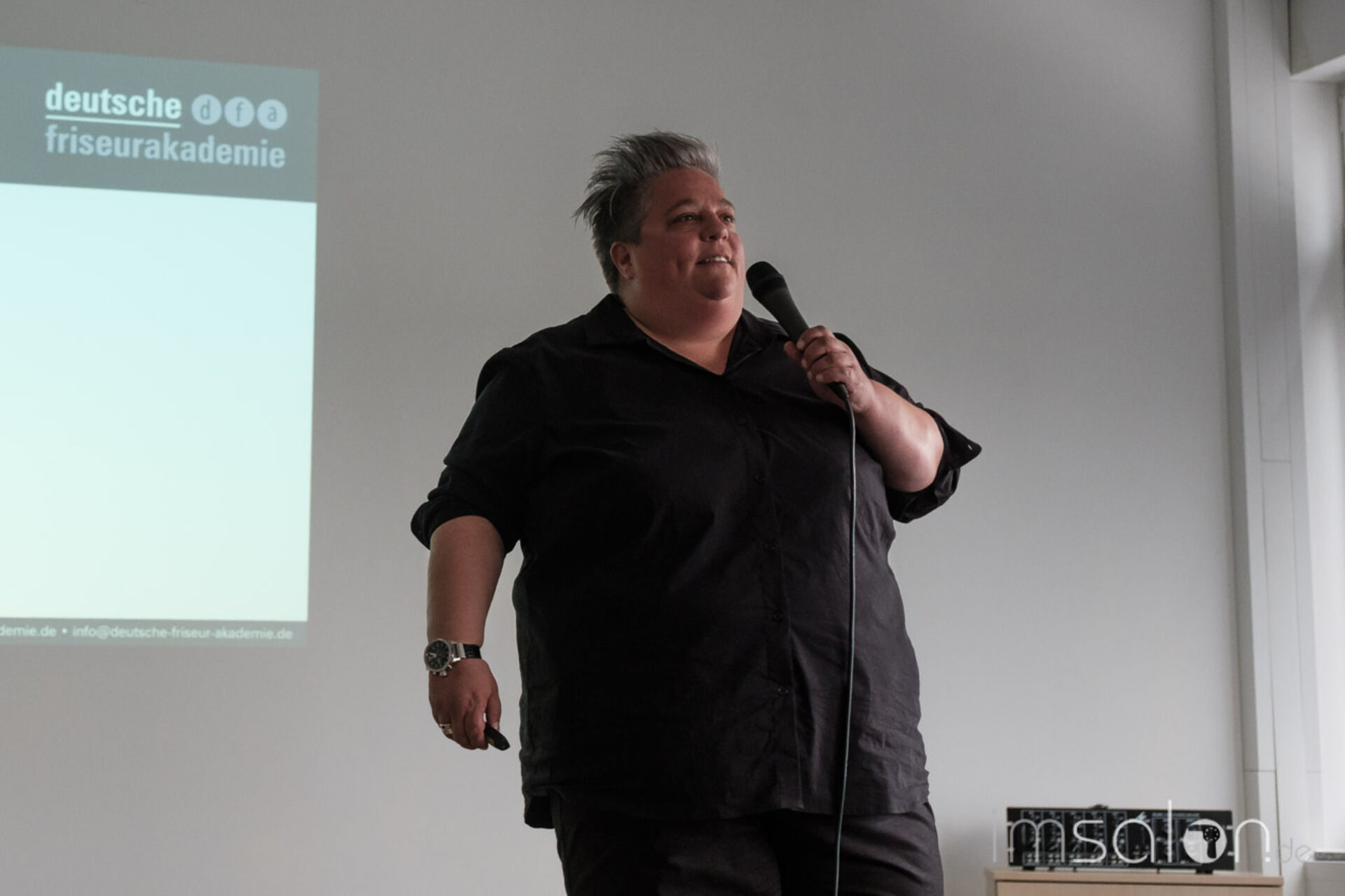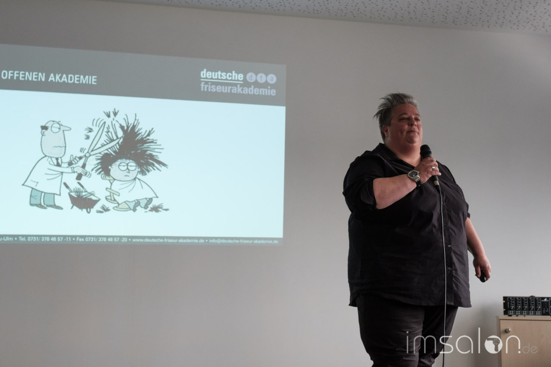 Harald Gloning, Geschäftsführer der dfa, hieß die Gäste Willkommen und gab Einblicke ins dfa Aus- und Weiterbildungsporfolio. Ob Friseur- und Kosmetikmeister, Friseur-Trainer oder Spezialist in Sachen Farbe, Barber, Hochstecken oder Zweithaar und und und - alles dabei. Alles spannend.