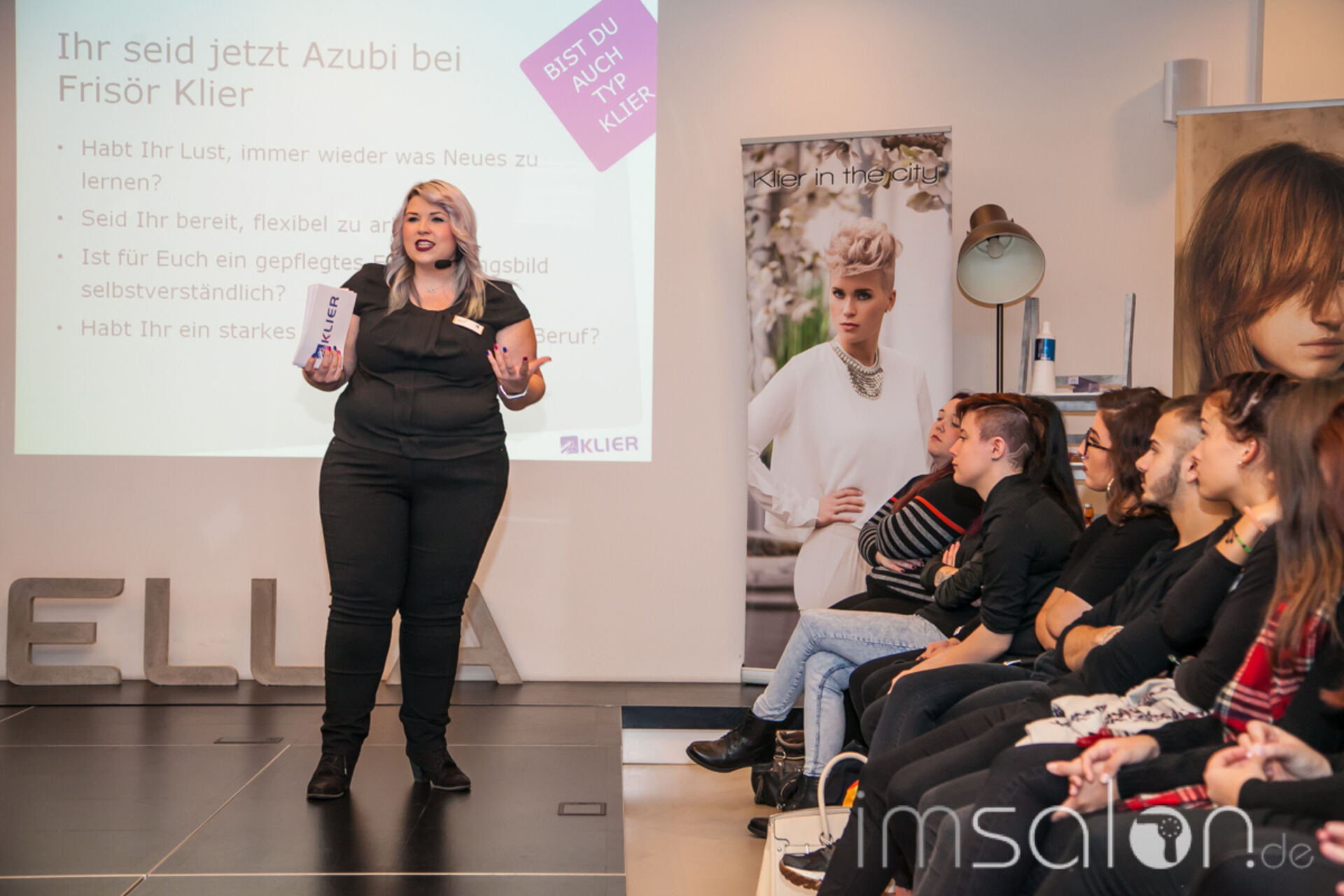Eine tolle Aktion von Frisör KLIER... Deutschlands größter Ausbilder tourt bundesweit, um alle Auszubildenden persönlich zu treffen. Michael Klier und sein Team freuen sich über den persönlichen Kontakt und betonen die Bedeutung der Neuankömmlinge im Unternehmen. Mit vielen Informationen rund ums Berufsbild, gespickt mit privaten Insights von auf die eigene Ausbildung zurückblickenden Friseurinnen und einem Potpourri an kreativen Stylings gehen die Auszubildennden motiviert aus dem Frankfurter WELLA-Studio.
