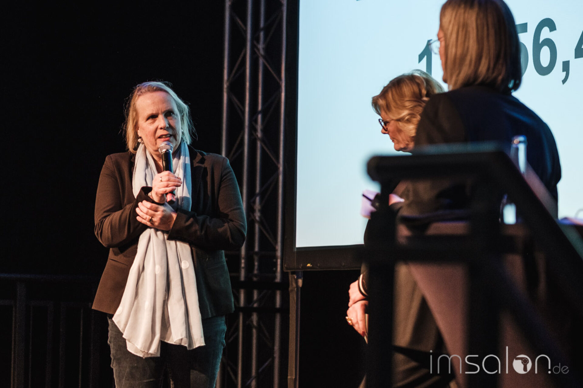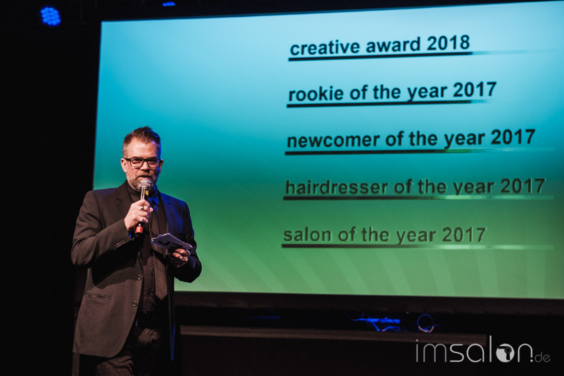 Mit Charme und Witz präsentiert Frontmann Achim Rothenbühleraktuelle Unternehmenszahlen zu Gesamtumsatz, Mitarbeiterinterna und Neukundengewinnung durch neue Salonkonzepte.