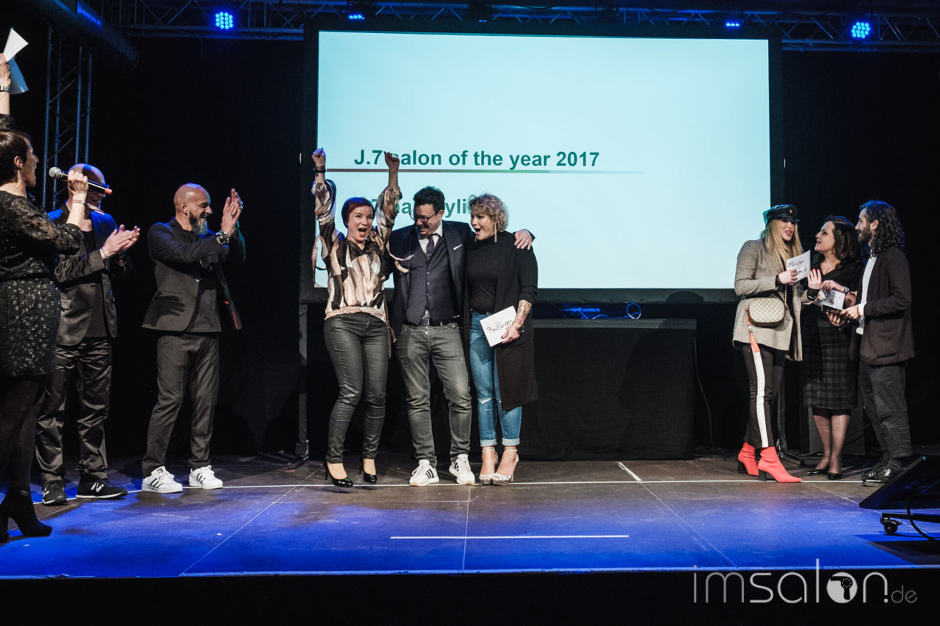 Die Verleihung der J.7 Awards durch Achim Rothenbühler, Ramona Lesny, Michael Knöpfle, Alexander Mäckl, Jens Swafing und Thomas Wormser ist immer ein Highlight und huldigt erfolgreiche Mitarbeiter und Partnersalons, die sich im Vorjahr durch besonders hervorgetan haben.