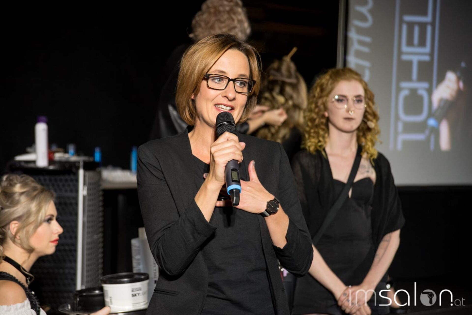 Maren Mittermeier; Mitarbeiterin Katharina Bedrava und Nadine Nagysombaty, Trainerin für Paul Mitchell