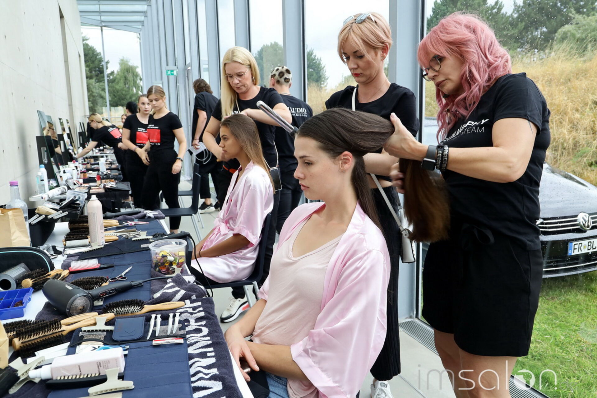10 Kevin Murphy Session StylistInnen + 24 Modelle + 20 bis 30 Minuten Zeit pro Modell = Annette Goertz Modenschau Backstage: