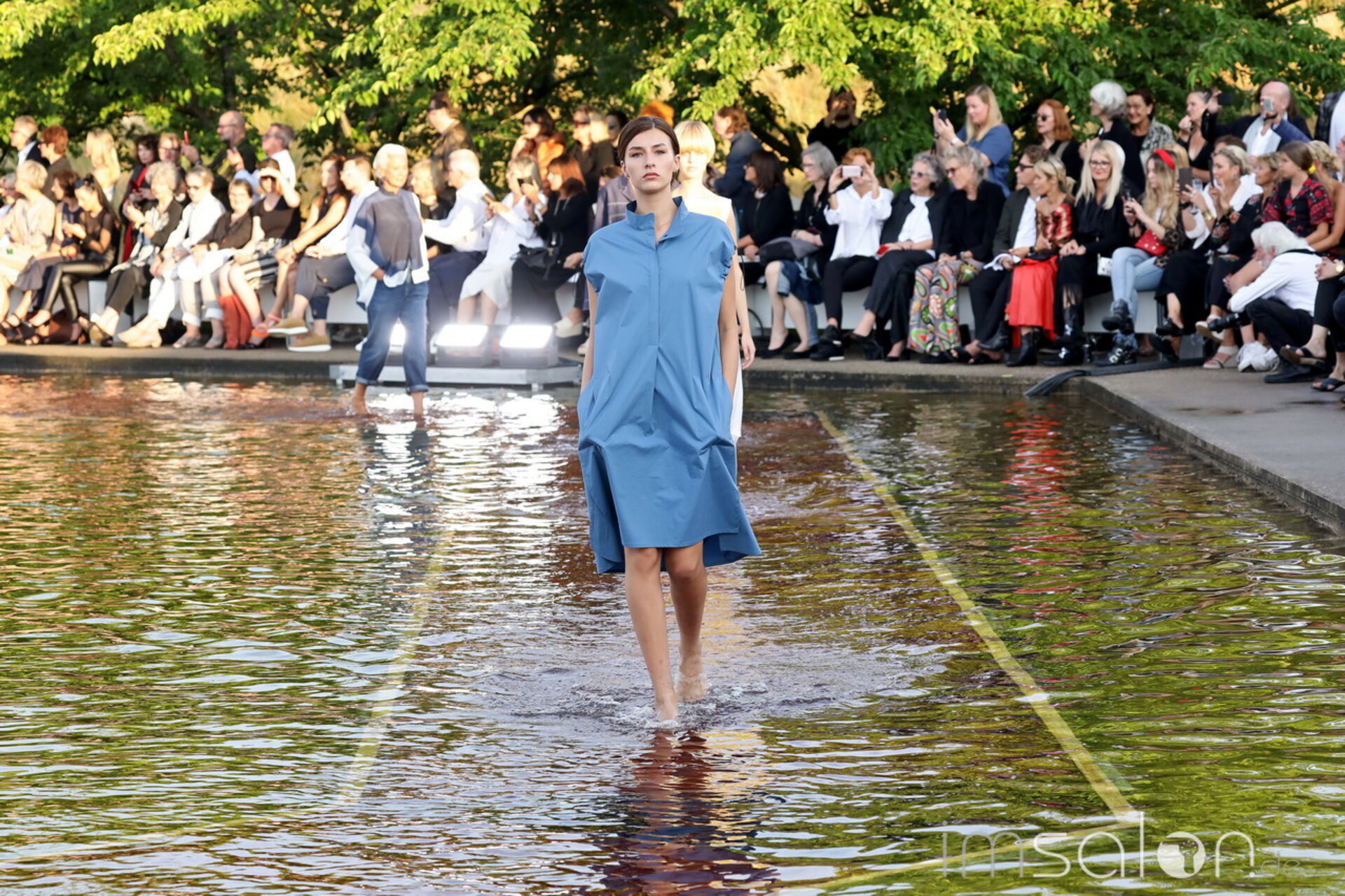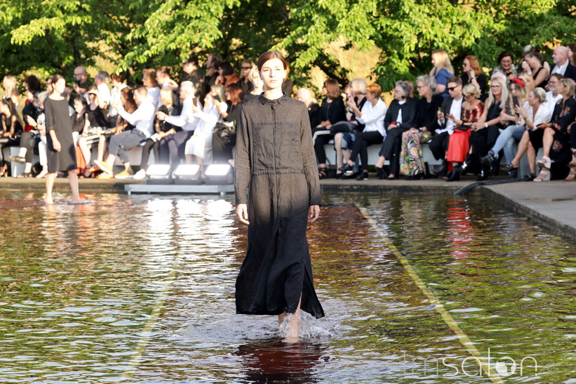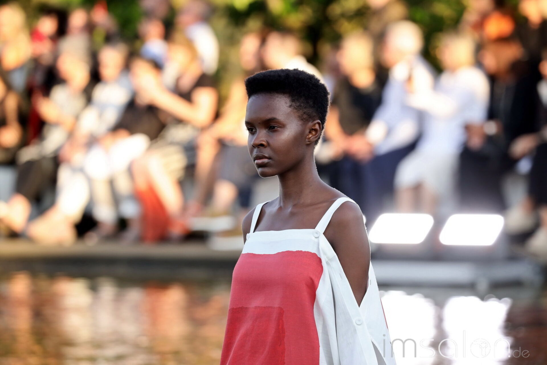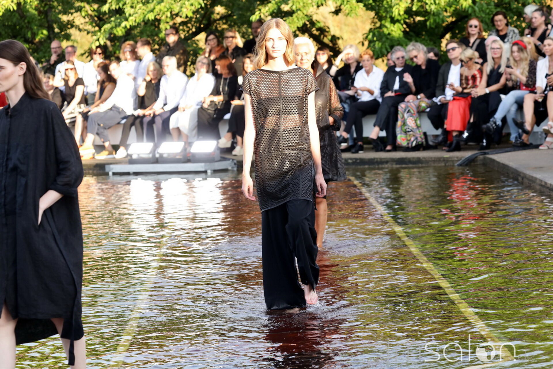 Das vom japanischen Architekten Tadao Ando entworfene Ausstellungshaus aus Beton, Glas und Stahl bietet die hervorragende Kulisse mit einem davor liegenden, großen Spiegelteich. Kunst und Natur in Symbiose, genau wie Kleidung und Haar bei der Annette Goertz Modenschau.