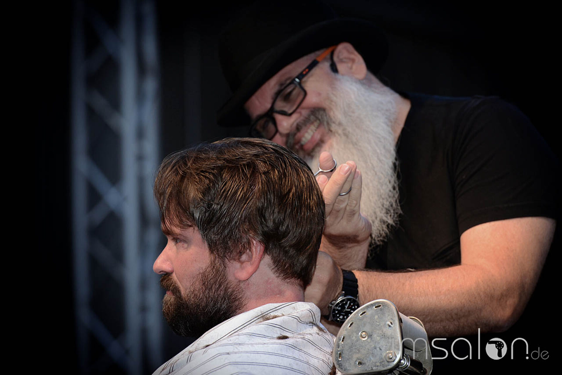 The American Barber Kraig Casebier entspringt dem Barber-Bilderbuch. Bart, Brille, Hut. Und genauso männlich sein Hair & Beard Cut. Last but not least dfa Matador Matthias Napp. Gewohnt sympathisch und hautnah spielt er mit Locken, Longbob, Schneidemaschine. Kurzum, gelungener Sommerauftakt in Neu-Ulm, der nahtlos in eine After Show Beach Party übergeht.