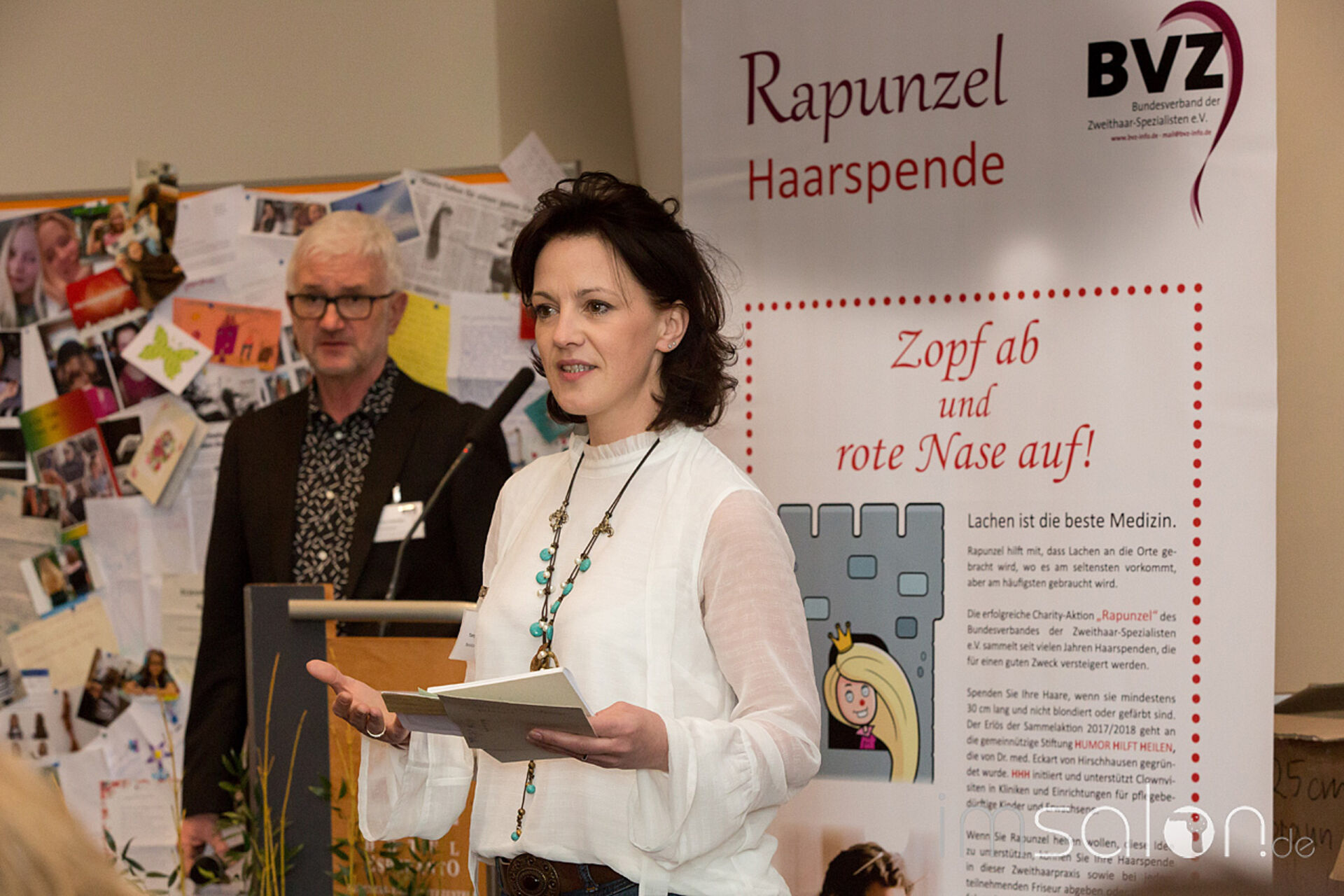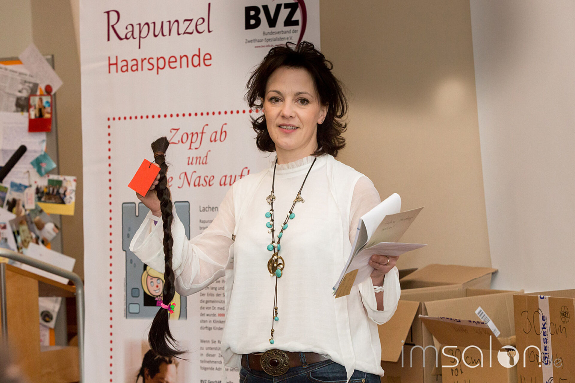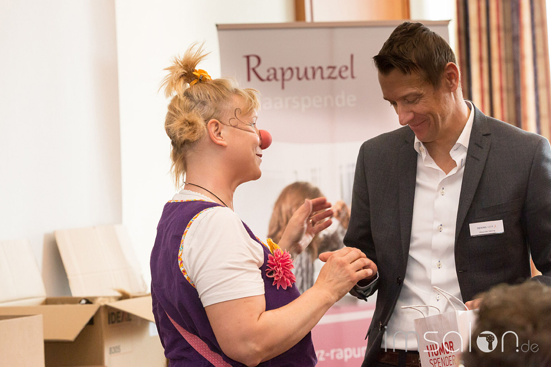 Humor hilft heilen! Wie in jedem Jahr ist die Rapunzel-Versteigerungfixer Bestandteil der Zweithaar-Messe. Endverbraucher und Friseure aus ganz Deutschland haben Zöpfe gesammelt, 130 Kg insgesamt, mit einem Gegenwert von 57.500,- Euro. Herr Dening (Dening Hair GMBH, www.dening.de/) gab dieses Höchstgebot an den BVZ. Der gesamte Erlös kommt dem Verein HUMOR HILFT HEILEN von Dr. Eckart von Hirschhausen zugute.