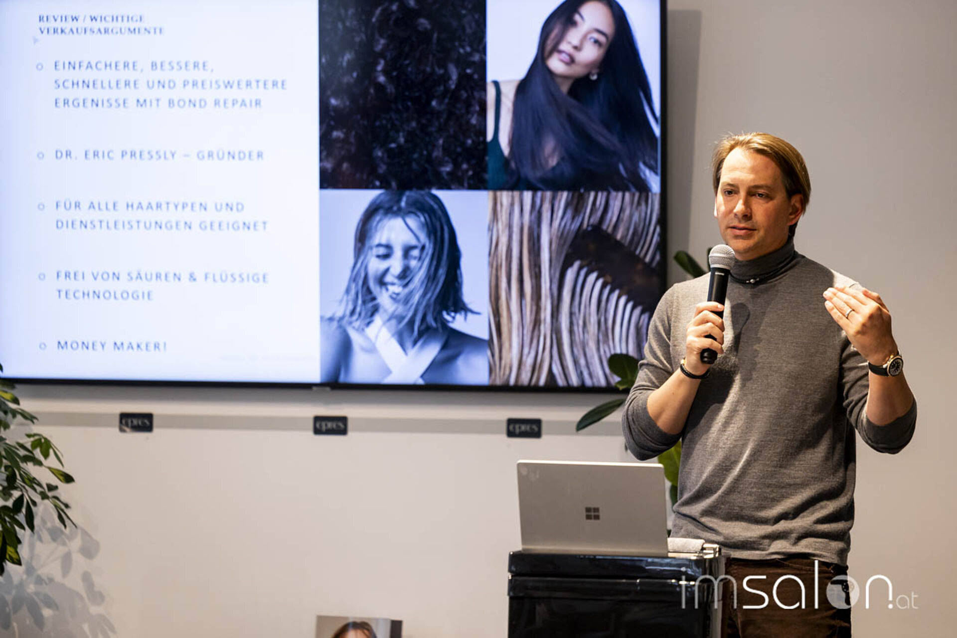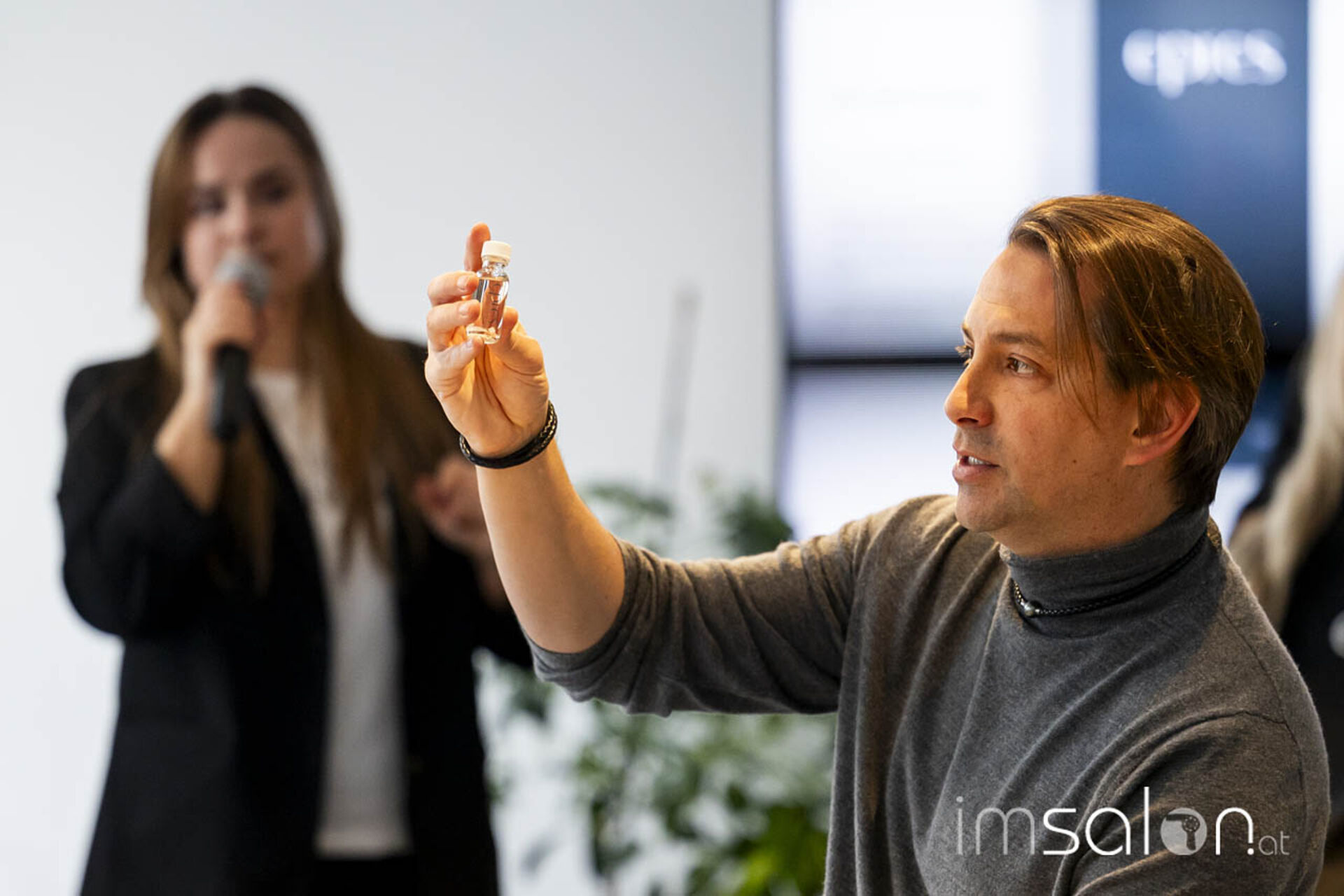 Eigens aus den USA eingeflogen wurde dafür Dr. Eric Pressly, der das wissenschaftlich geführte Beauty-Unternehmen epres™ leitet. Der Doktor der Werkstofftechnik und Olaplex-Miterfinder ist Vorreiter in der Entwicklung nachhaltiger Haarpflegeprodukte mit Fokus auf Performance und Innovation.