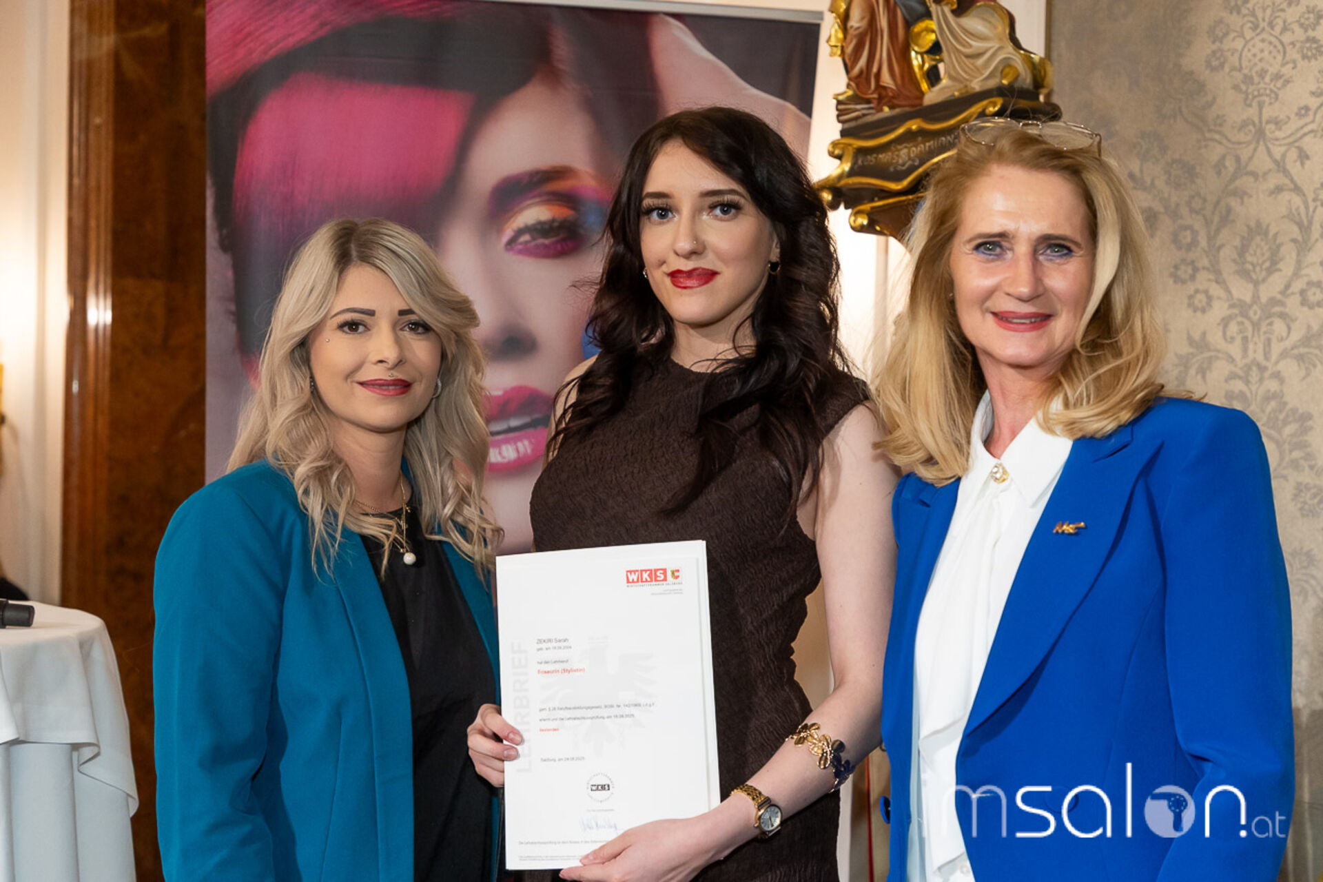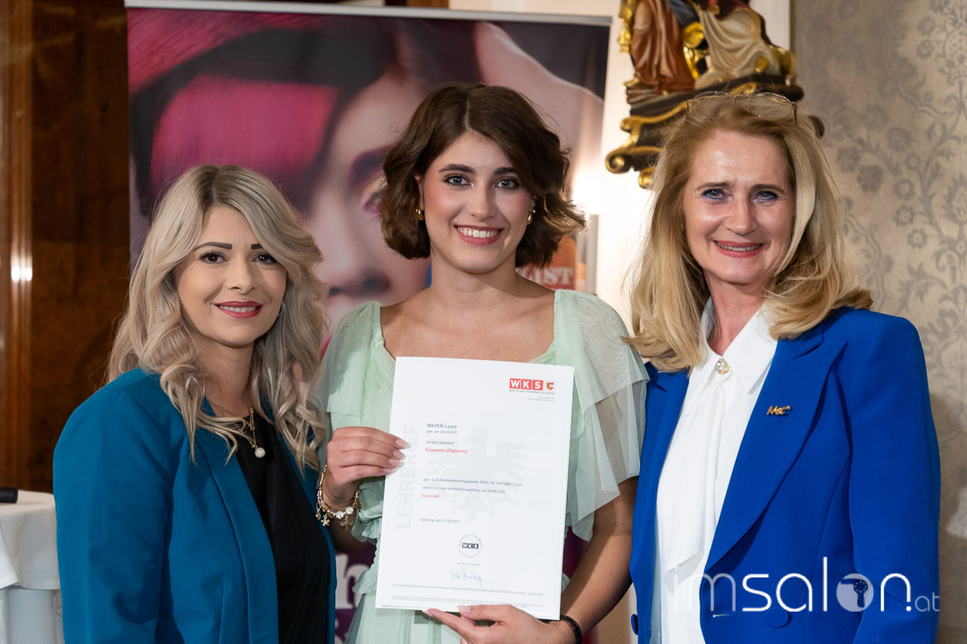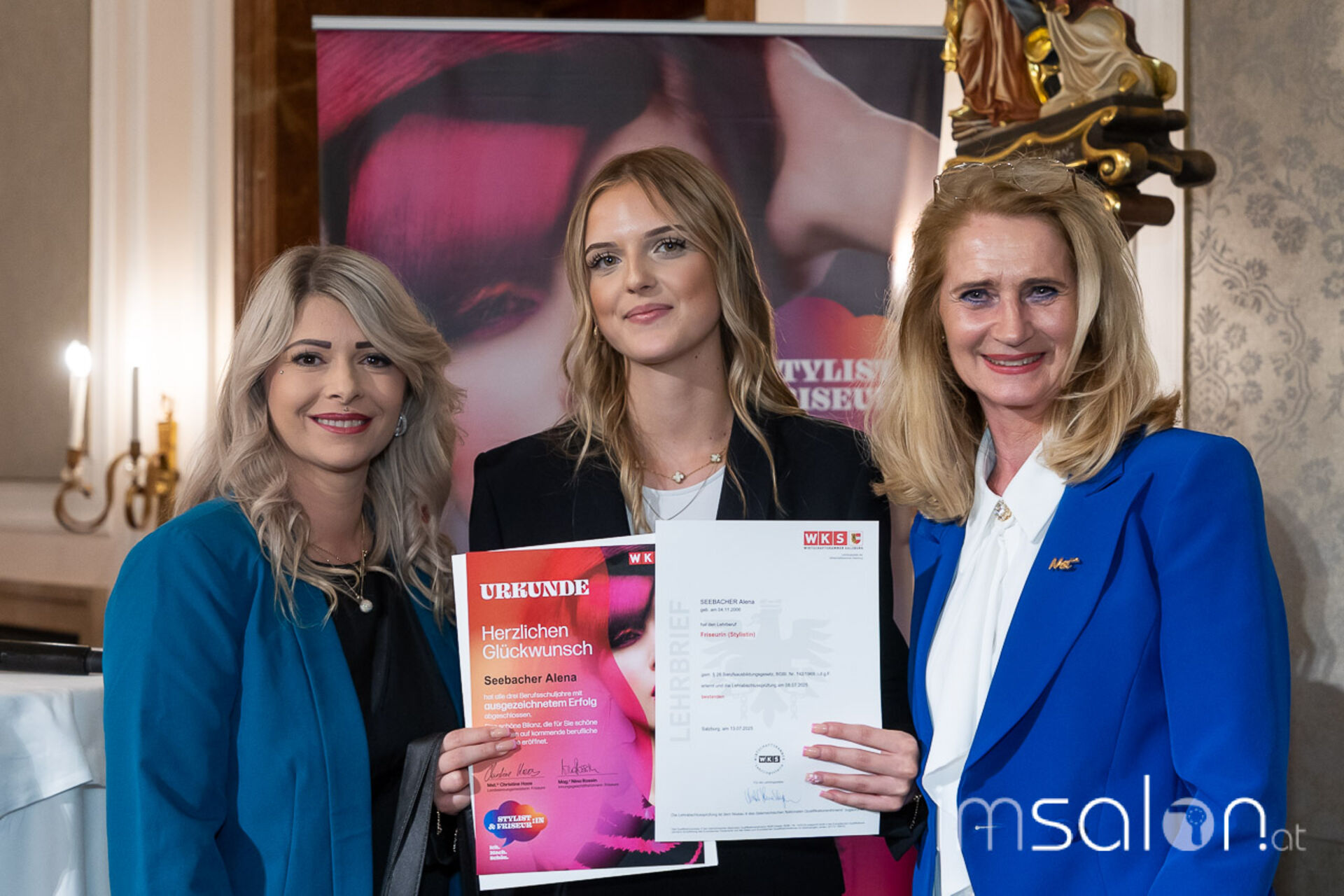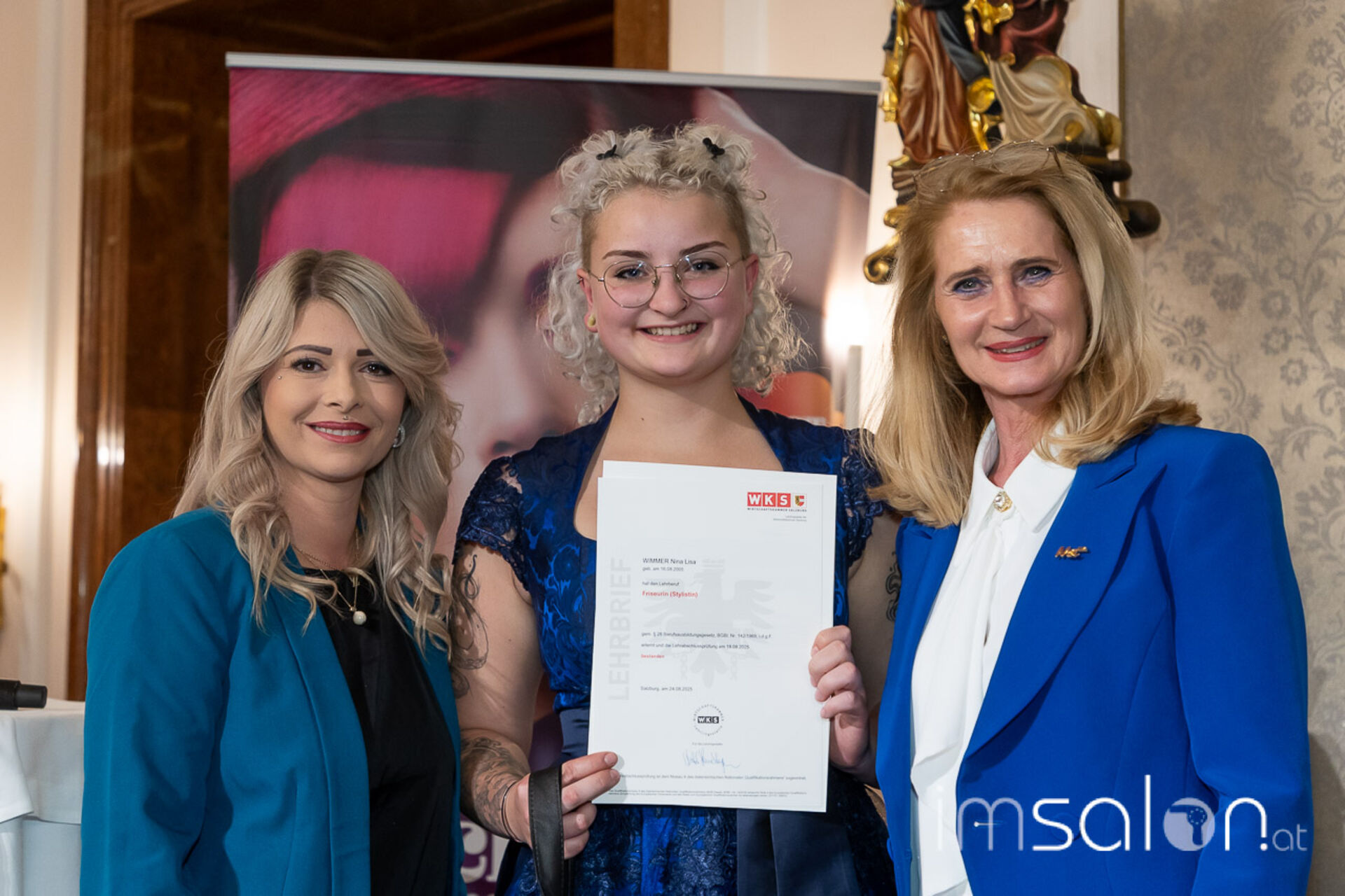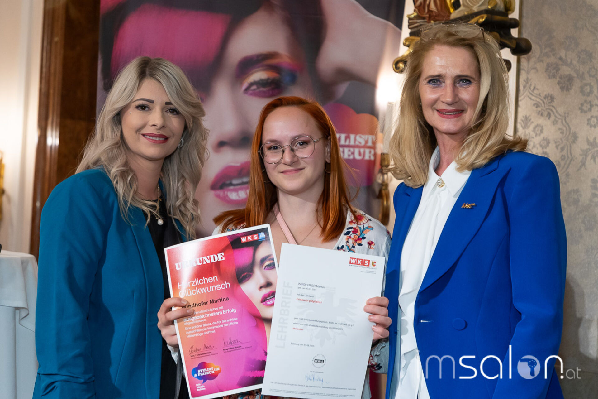 Am 15. September fand die festliche Freisprechfeier der Friseurinnen und Friseure Salzburgs erstmals unter Federführung der neuen Landesinnungsmeisterin ►Christine Haas statt. Beim sogenannten "Freiwaschen" wurde den Absolventinnen ihr Gesellenbrief überreicht und sie im Beisein von Familie, Freunden und KollegInnen offiziell in der Friseurbranche willkommen geheißen. Friseursalon, Ausland, Selbstständigkeit. - sie sind bereit für Neues!