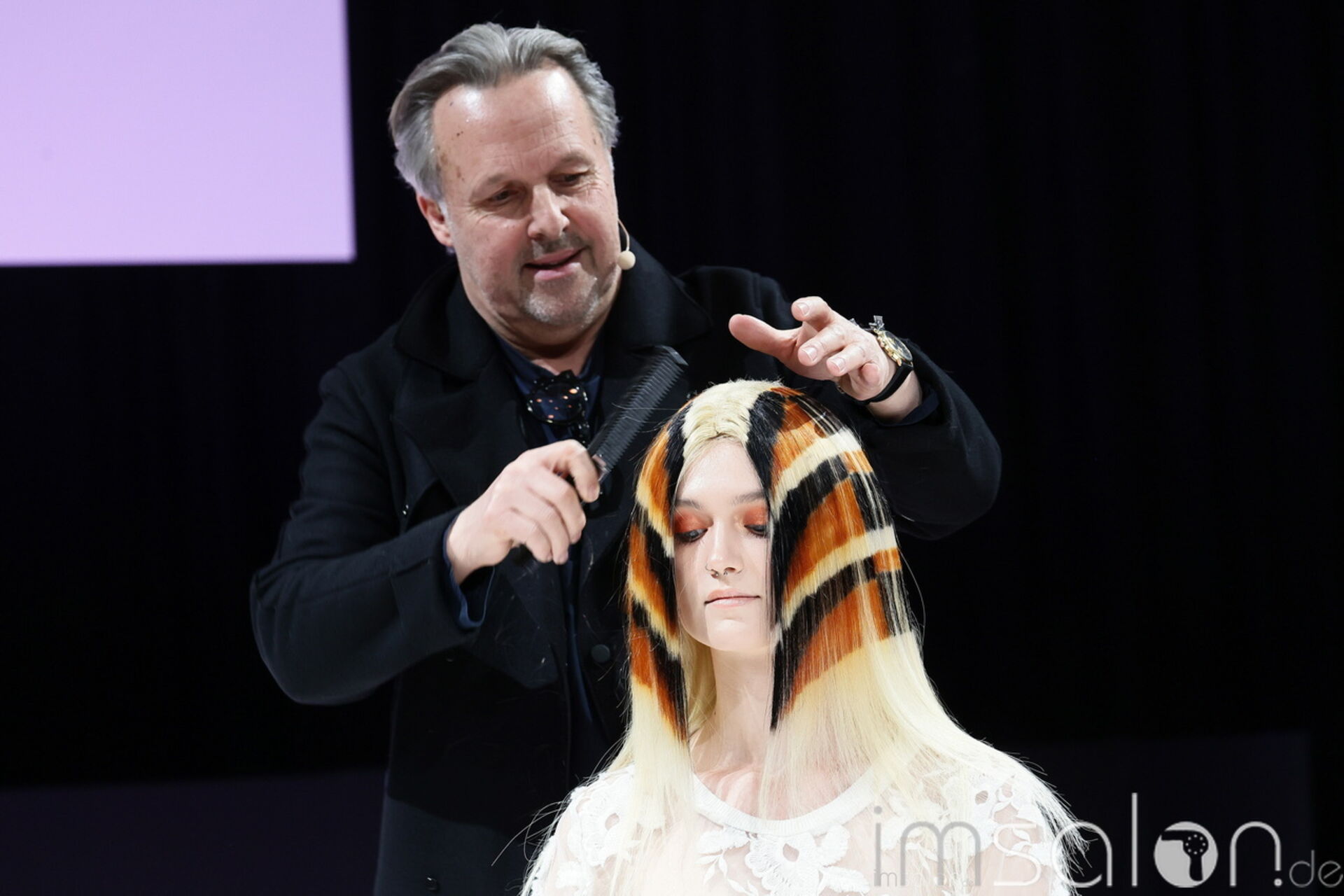 Diejenigen, die sich für Awards in der Kategorie Avantgarde bewerben möchten, waren bei Jean Marie Hick bestens aufgehoben. Der Belgier spielte auf der Top Hair Bühne mit Strukturen, Techniken, Farben und Haarteilen, um Illusionen zu schaffen. Er zeigte, wie mit einfachen Hilfsmitteln, wie Haarnetzen, Beeindruckendes, in kurzer Zeit vollbracht werden kann. Dabei schafft Jean Marie Hick zeitgeistige und zeitlose Stylings zugleich. Ein Workshop, der inspirierte und ins Staunen versetzte.
