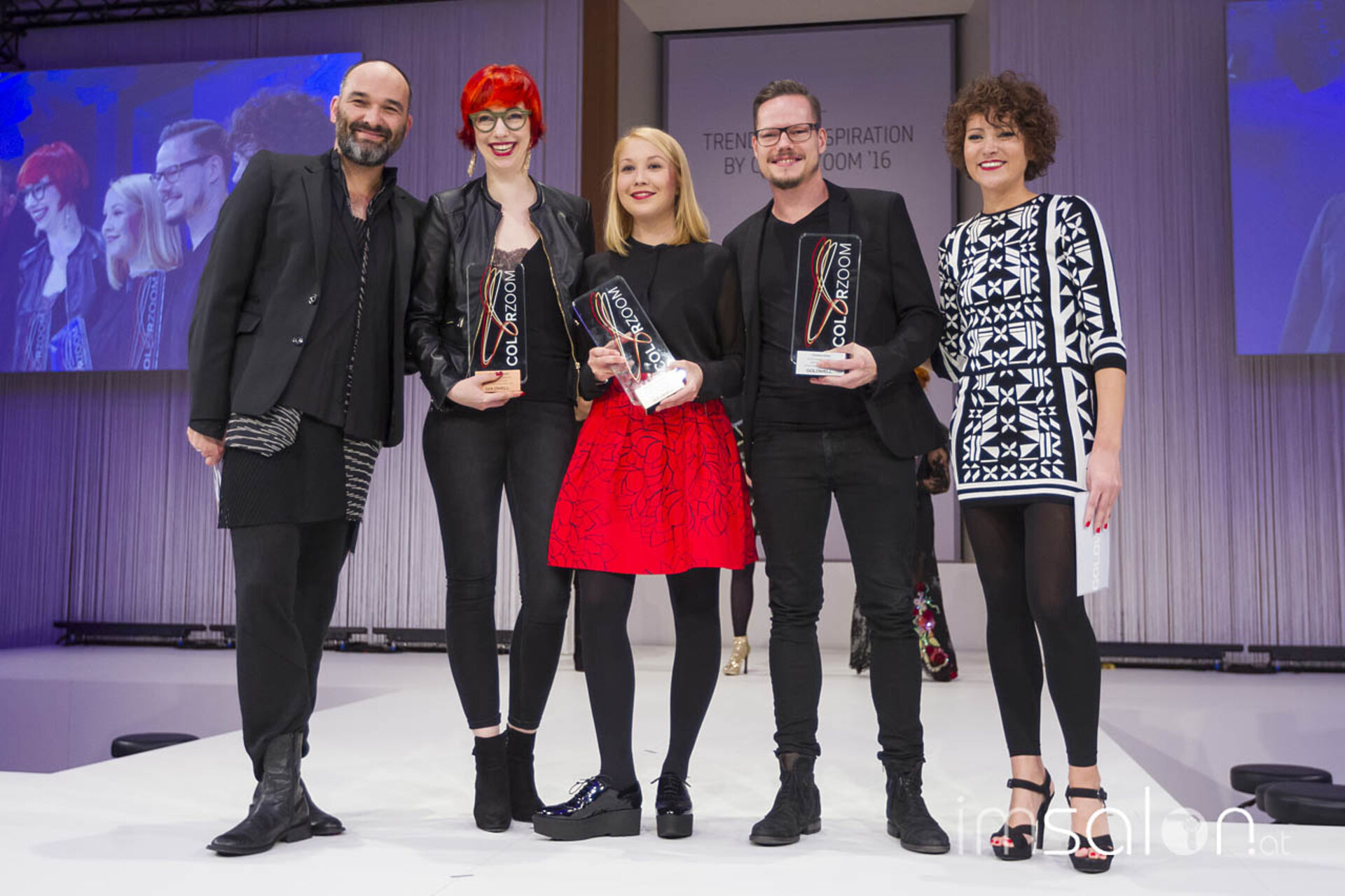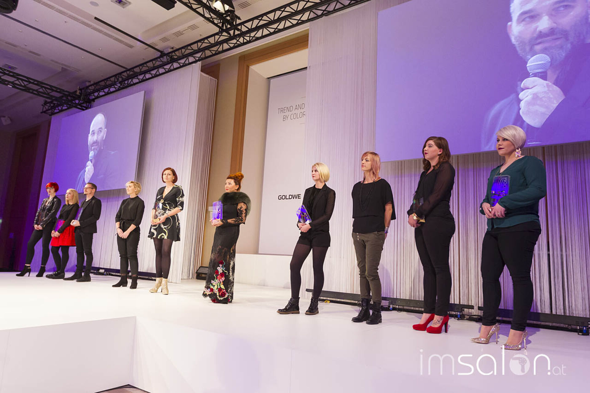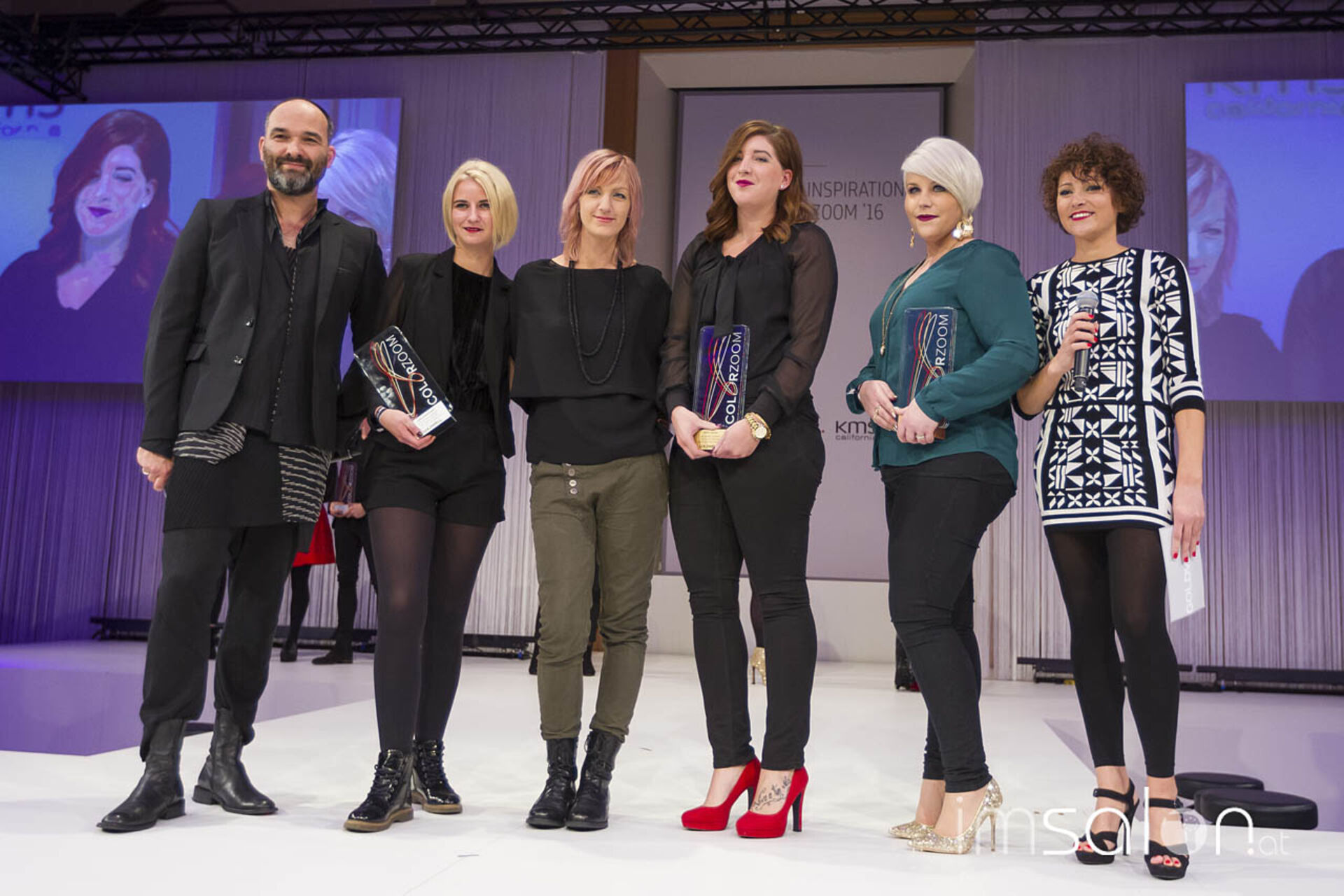 Der Auftakt in einen kurzweiligen Showtag: Die Verleihung der nationalen Goldwell Color Zoom Gewinne! Mit auf der Bühne auch Karin Overbeck, Tobias Staehle, Andreas Mignon und Mareike Bock.