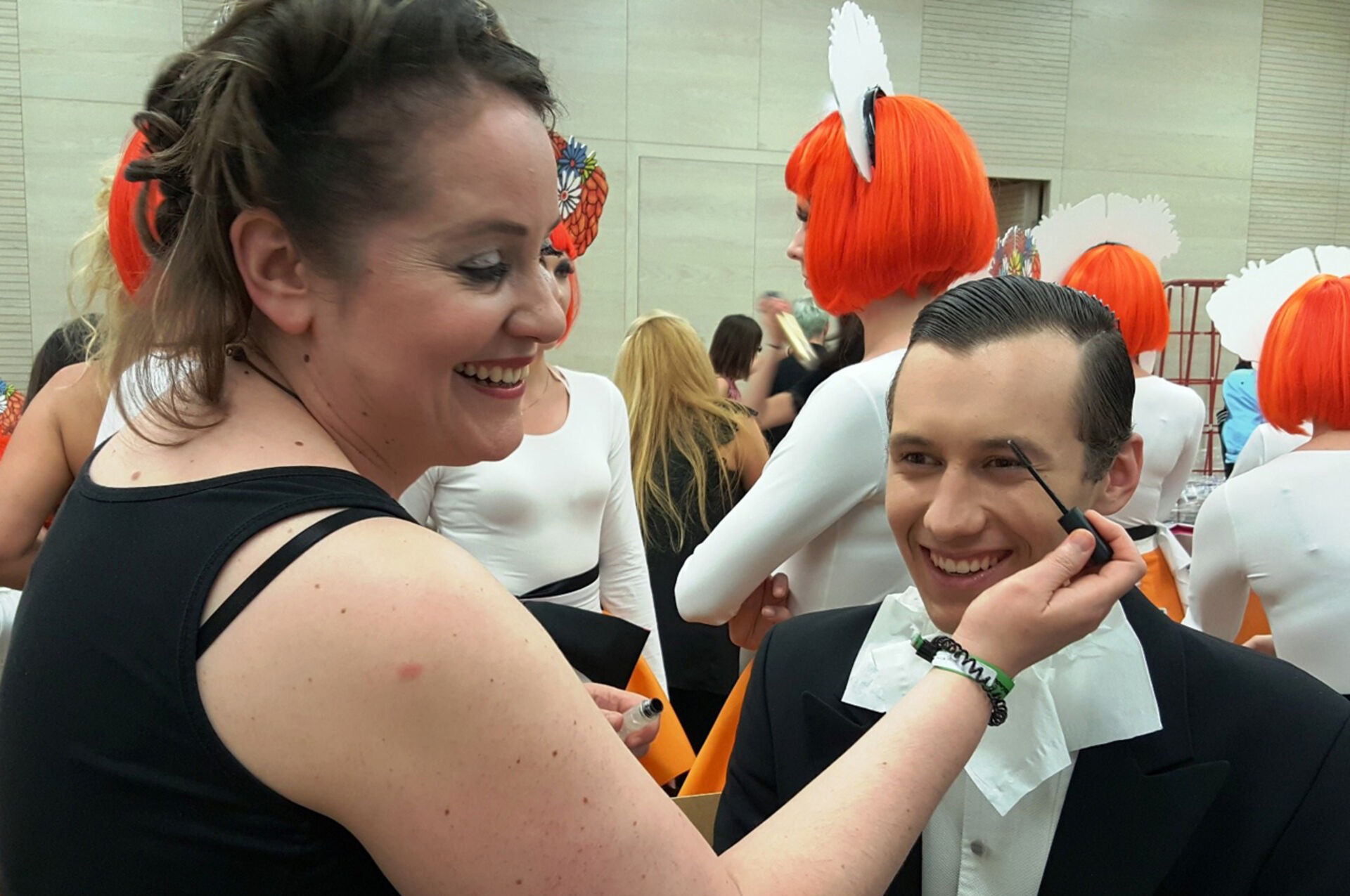 Im Rahmen der Ausbildung zum Hairstylist, aber auch in der neuen Ausbildung zum Make-up Artist ist dies sicher eines der großen Highlights. Wie immer wird auch dieser Job schon Tage davor mit dem ganzen Team genau vorbereitet, geprobt, jeder Handgriff muss sitzen. Denn, 200 DebütantInnen wurden von den Students der Academy für die Eröffnungsshow gestylt.