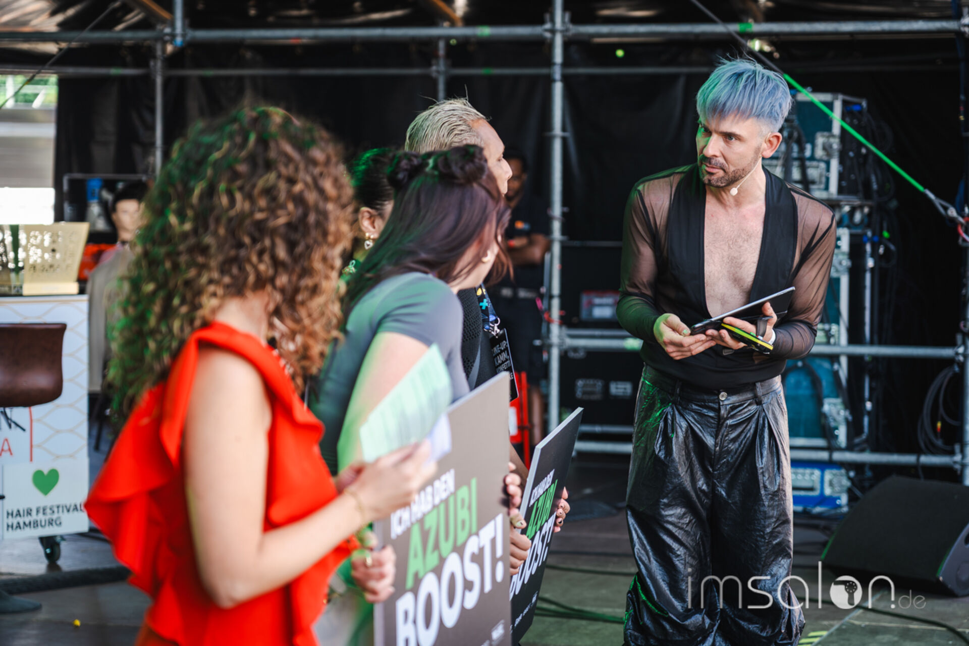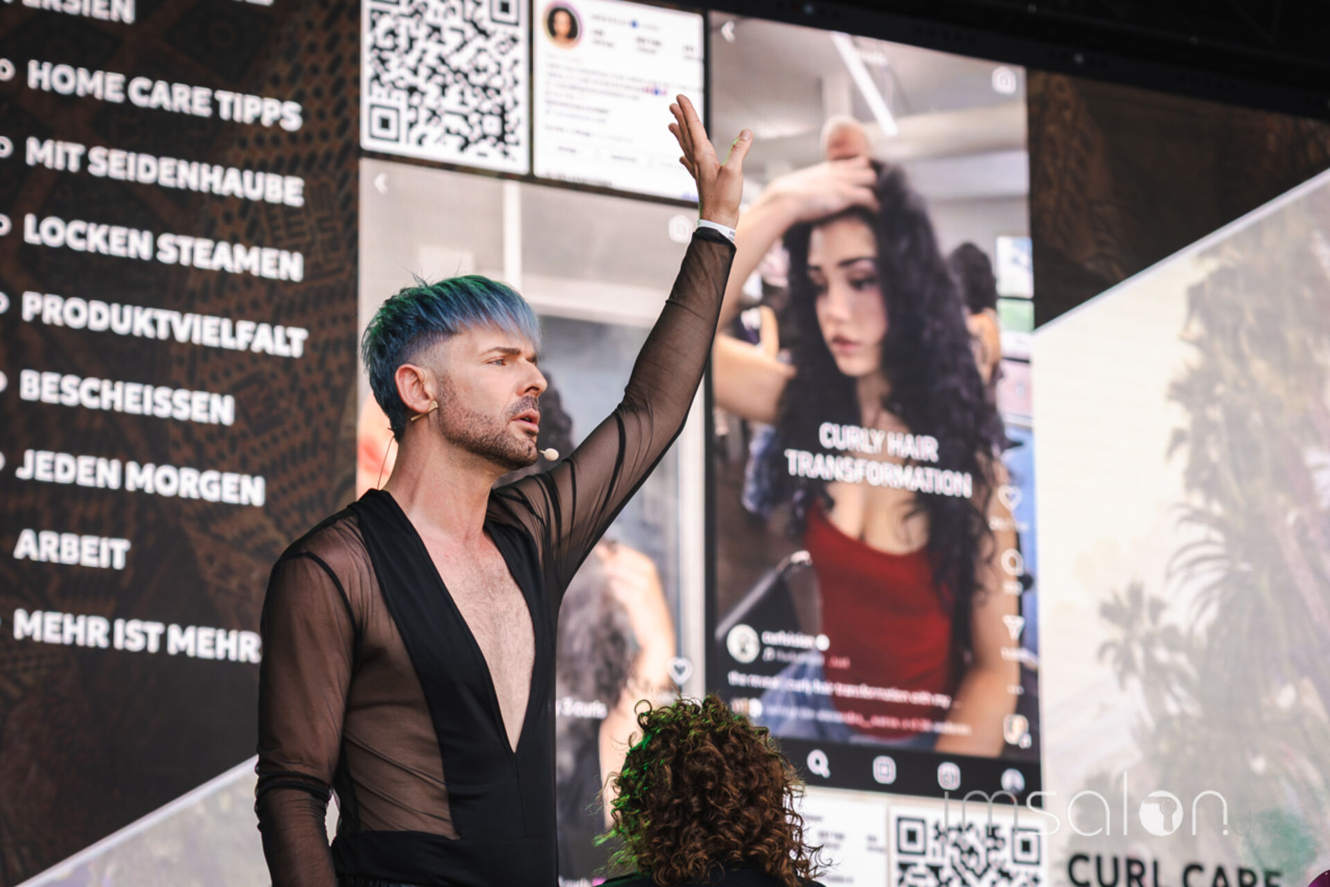 Daniel Golz begrüßte gemeinsam mit Sandra Samper das Publikum, einen ganzen Tag lang führten sie durch das Festival. Zudem unterhielt Daniel mit Einblicken in seinen Insta-Feed brachte die internationalen Hairstylings, die ihn in Social Media inspiriert haben, live auf die Bühne!