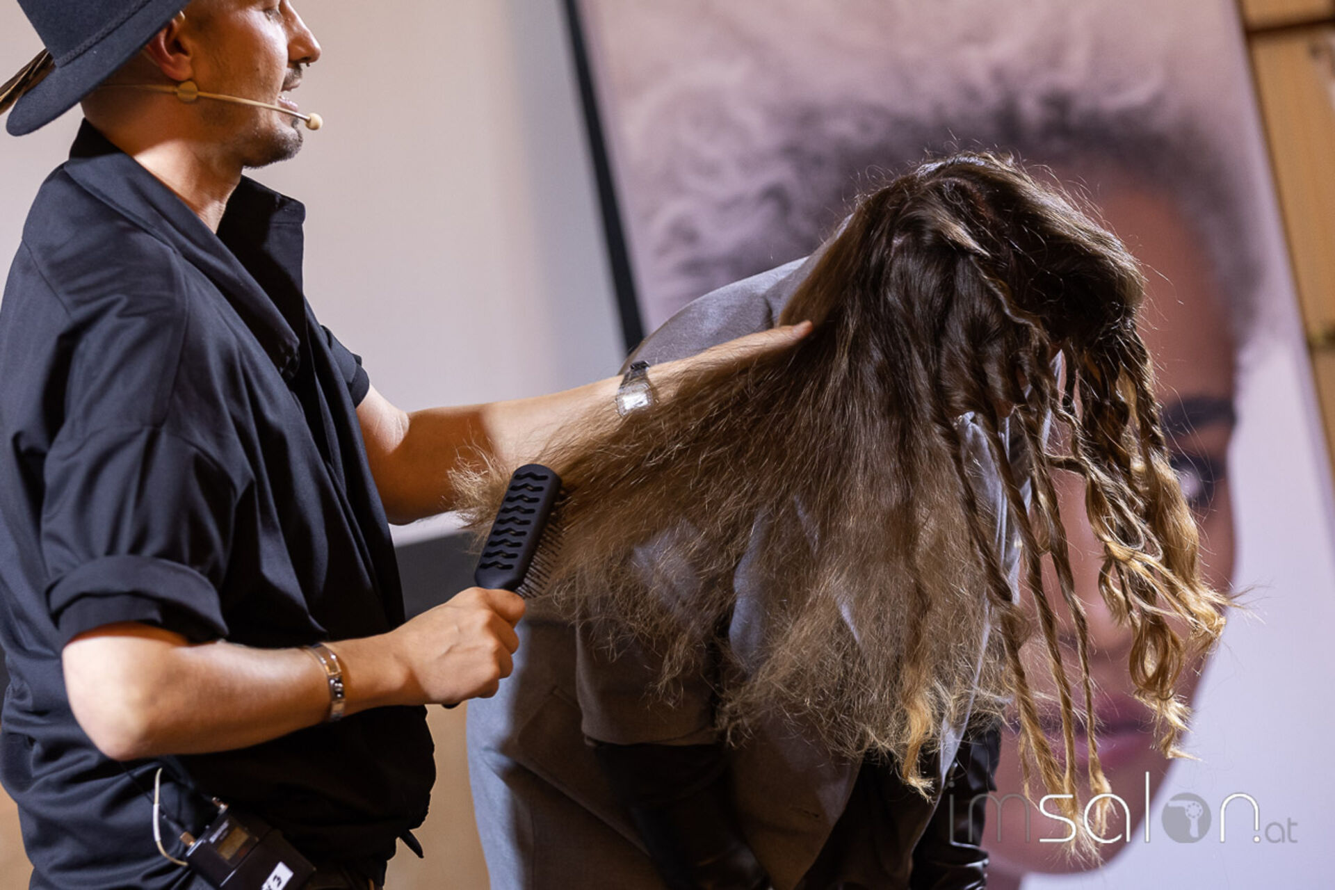 Sie ist überzeugt, dass Friseur*innen nur etwas bewegen können, wenn sie sich selbst bewegen. Das Thema ihres Workshops, mit dem sie das Publikum mit auf ihre Reise nahm: „Zukunftsorientierte Kommunikation im Friseursalon“.