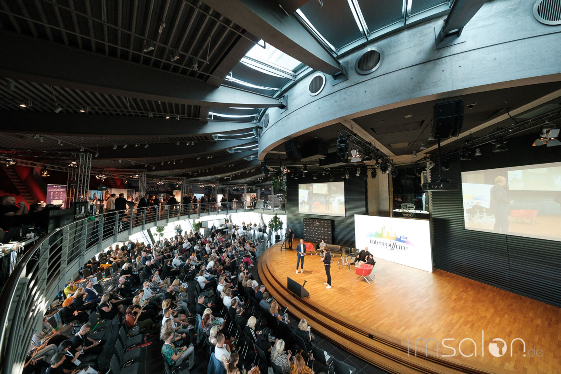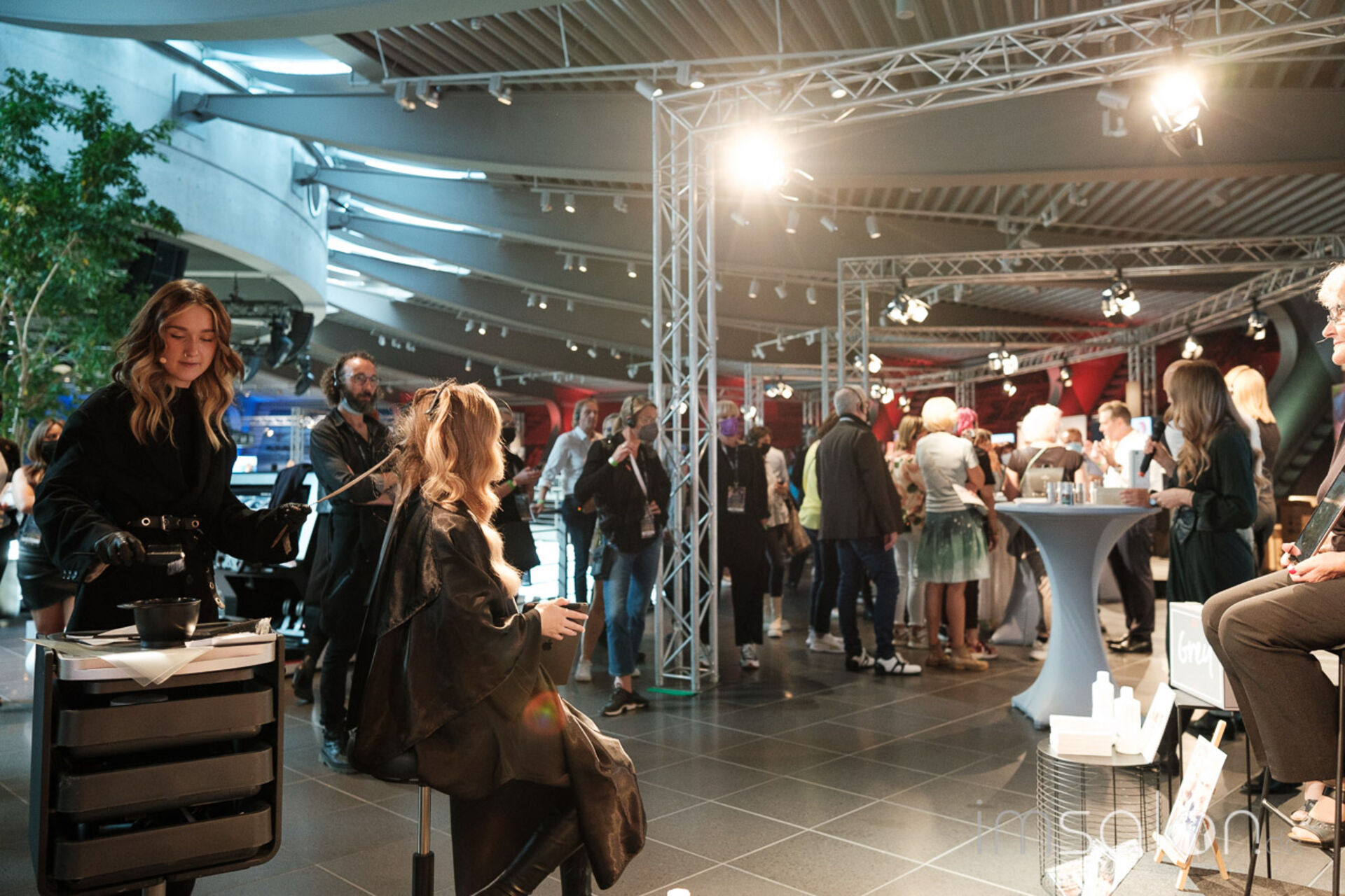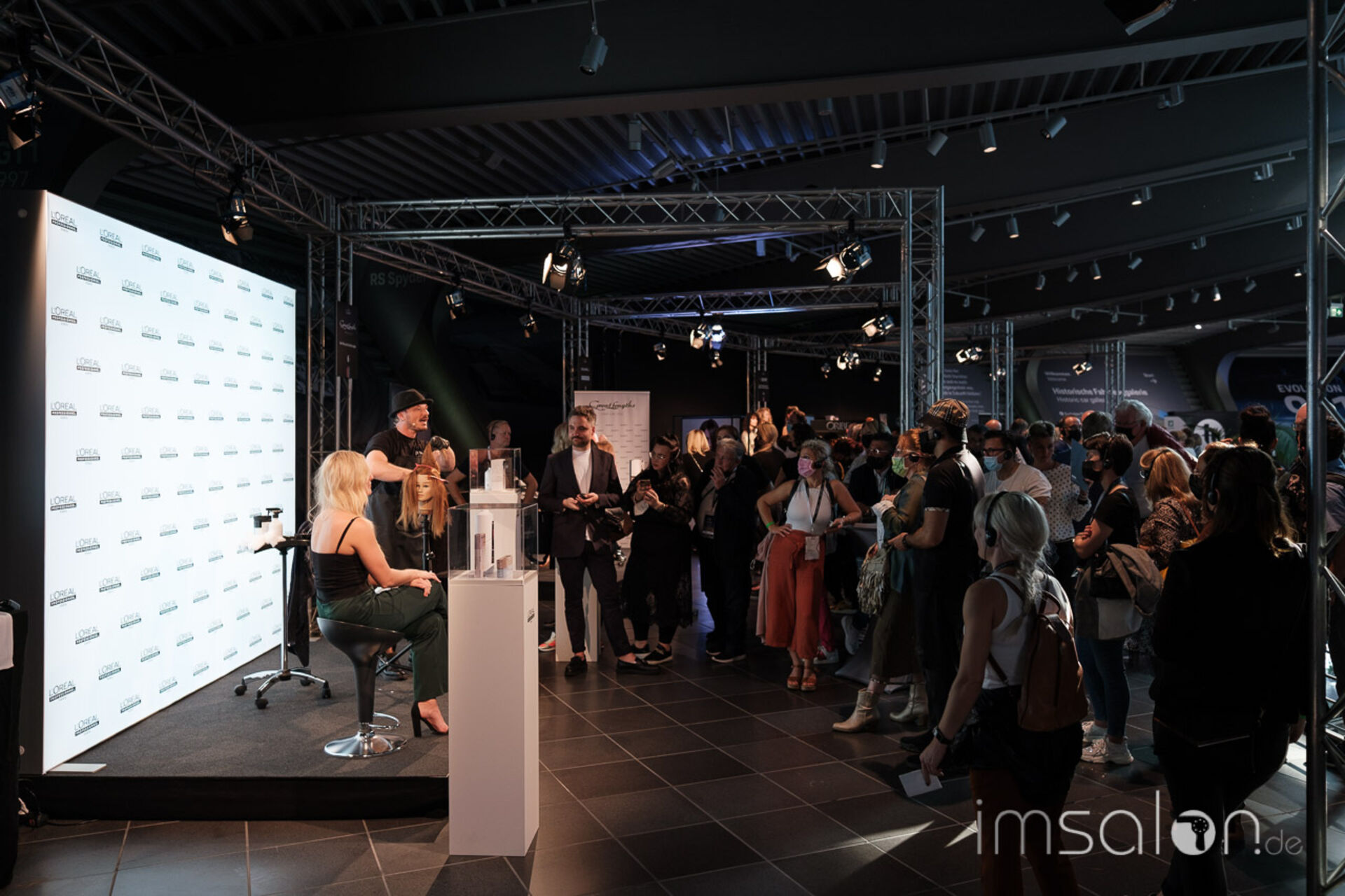 Viele Produktnews und Technik wurde auf 11 kleinen Workshopbühnen von den Intercoiffure Partnern präsentiert. Hier gab es endlich wieder Haarfarbe und Pflege zum Anfassen, Pflegedüfte zum Schnuppern.