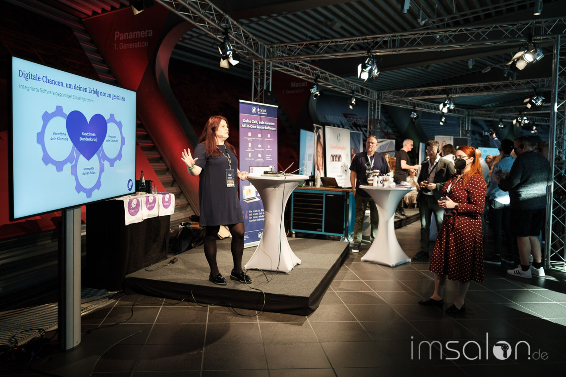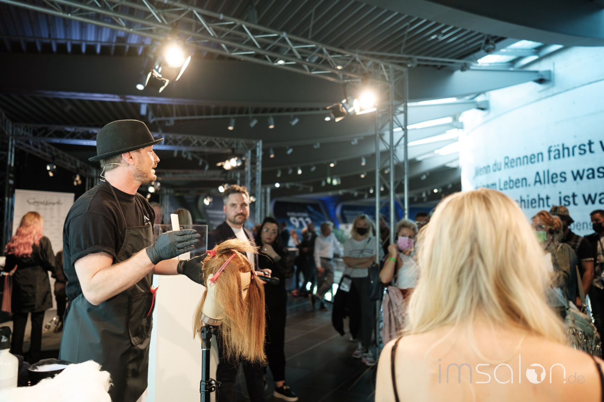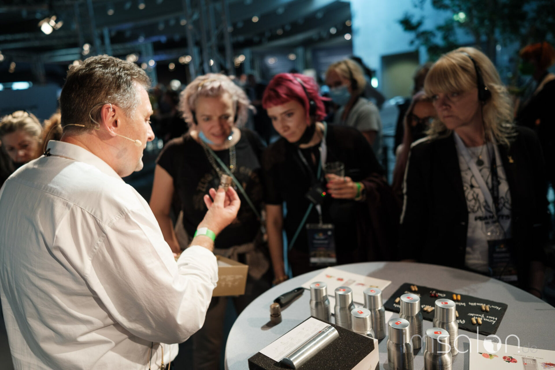 Viele Produktnews und Technik wurde auf 11 kleinen Workshopbühnen von den Intercoiffure Partnern präsentiert. Hier gab es endlich wieder Haarfarbe und Pflege zum Anfassen, Pflegedüfte zum Schnuppern.
