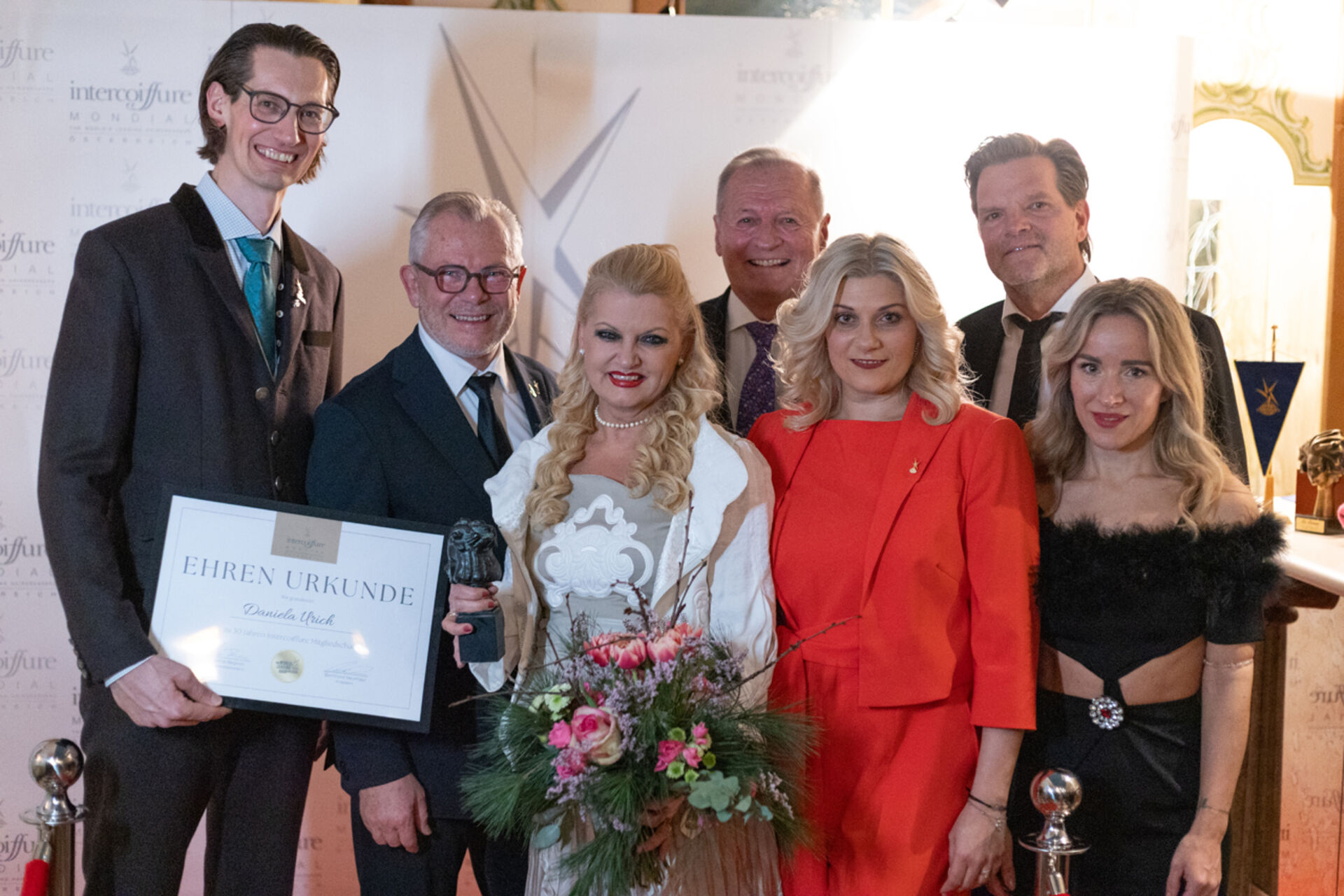 Beim feierlichen Sektempfang am Abend standen Ehrungen und Neuaufnahmen im Mittelpunkt. Neu in die Intercoiffure Austria aufgenommen und feierlich angelobt wurden Karina Jetzinger und Astrid Mair am Tinkhof.